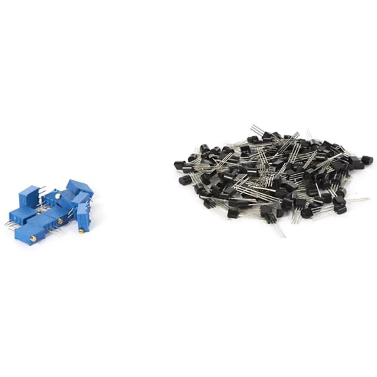 Amplifique ou troque sinais eletrônicos e energia elétrica com esses transistores. Também estão incluídos os potenciômetros que você pode usar como divisores de tensão ajustáveis.