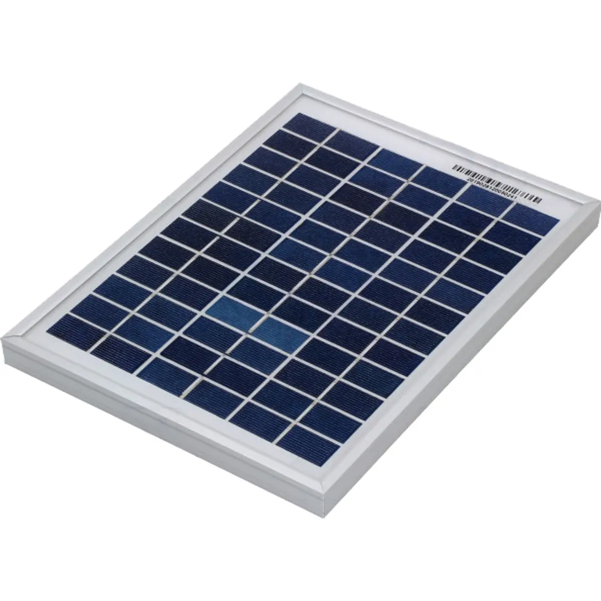 Painel fotovoltaico policristalino de 12 V, com potência máxima de 5 W, adequado para instalações de energia solar compactas. Possui Vmpp de 18,2 V, Impp de 0,28 A e Isc de 310 mA, fornecendo energia estável em condições de iluminação. Dimensões externas de 251 x 186 x 18 mm, fabricado em silício policristalino. Ideal para aplicações em pequenos sistemas solares, como carregamento de baterias e controlo de dispositivos, com montagem simples em estruturas planas ou suportes dedicados.