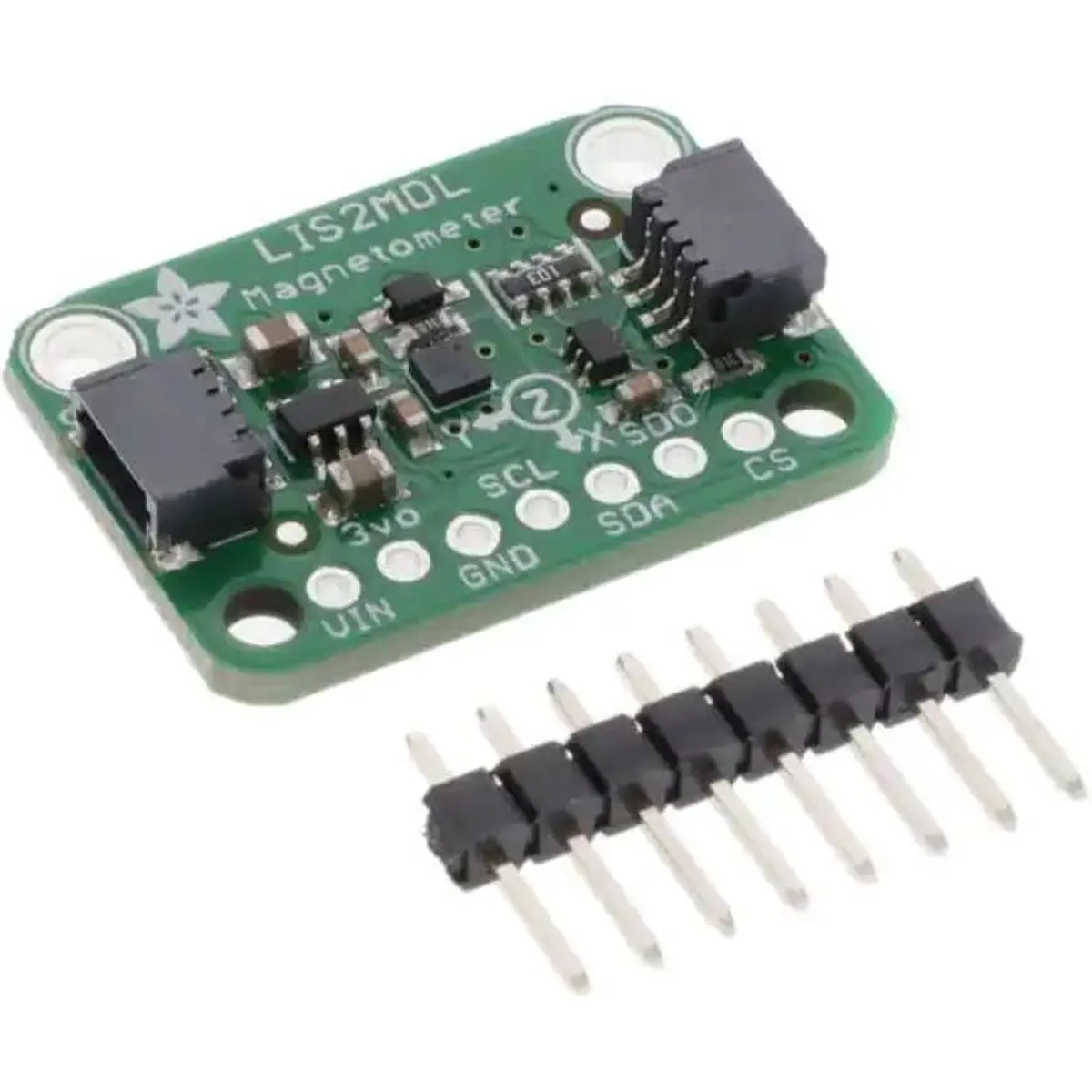 Sinta os campos magnéticos que nos cercam com este prático módulo de magnetômetro de eixo triplo (bússola). Os magnetômetros podem detectar de onde vem a força magnética mais forte, geralmente usados para detectar o norte magnético, mas também podem ser usados para medir campos magnéticos. Este sensor tende a ser emparelhado com um acelerômetro / giroscópio 6-DoF (degree of freedom) para criar uma unidade de medição inercial 9-DoF que pode detectar sua orientação no espaço real graças ao campo magnético estável da Terra.