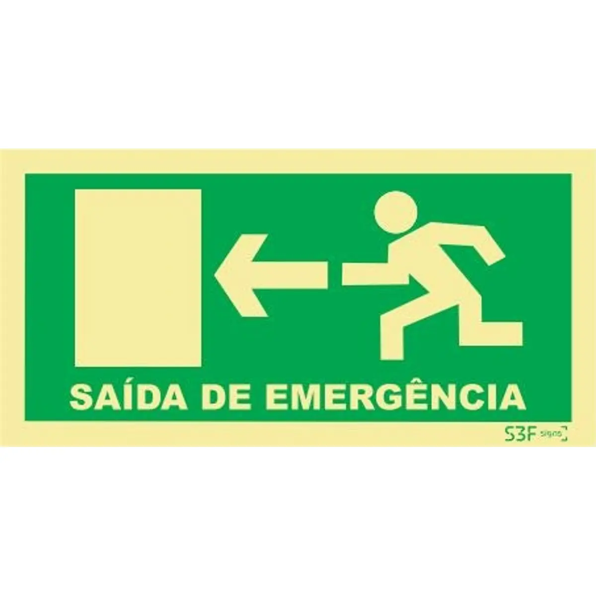 Placa de sinalização fotoluminescente p/ saída de emergência ''Esquerda'' - 300x150mm