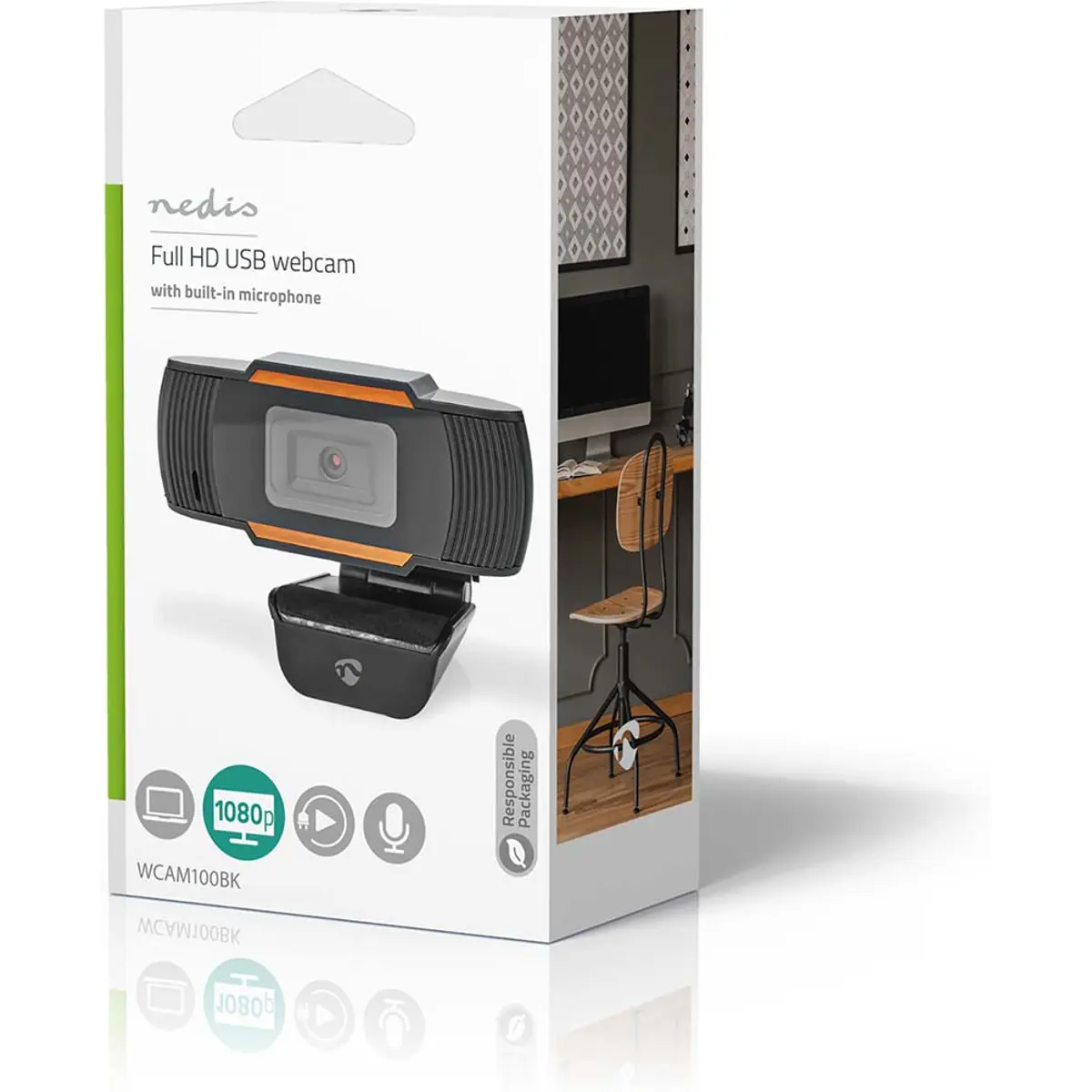 Esta webcam USB com fios da Nedis permite que faça videochamadas com amigos, familiares e colegas. Especialmente graças à lente de grande angular, toda a família fica perfeitamente visível quando a webcam está ligada. A resolução full HD (1920x1080p) a 30 frames por segundo garante imagens sem pixels, enquanto os microfones estéreo integrados captam vozes de forma clara e cancelam ruídos ao redor. O suporte universal pode ser utilizado de duas maneiras: fixado no monitor ou colocado na secretária.