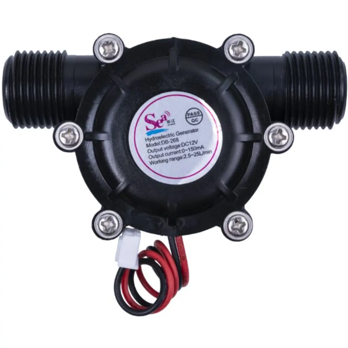 Este pequeno dispositivo funciona no mesmo mecanismo de uma turbina hidroeléctrica que normalmente está localizada no meio de um rio através da construção de uma barragem. Depois de configurar este pequeno dispositivo com um fluxo de água com pressão considerável (conectar a uma torneira, conectar ao fundo de um tanque de água), a pressão da água ajuda na rotação da pequena turbina que fica dentro do dispositivo. Esta turbina tem pequenas pás no interior e essas pás começam a girar quando a água as atinge. Estas estão conectadas a um motor dentro do qual, por sua vez, também gira, resultando na geração de eletricidade. Por fim, ele é conectado a um pequeno circuito interno para regular a tensão de saída.