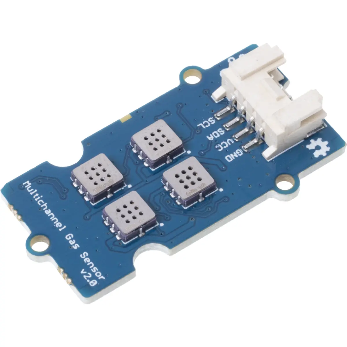 O Sensor de Gás Multicanal Grove V2 é um módulo com quatro sensores independentes, capaz de detetar uma variedade de gases para além de CO, NO2, álcool etílico (C2H5CH) e VOC. Baseado em MEMS, oferece tamanho compacto, estabilidade de medição e detecção qualitativa. Permite quatro conjuntos de dados simultâneos; é compatível com MCU STM32F030, interface I2C 0x55 e alimentação entre 3,3 e 5 V. Os sensores a bordo são GM-102B, GM-302B, GM-502B e GM-702B.
