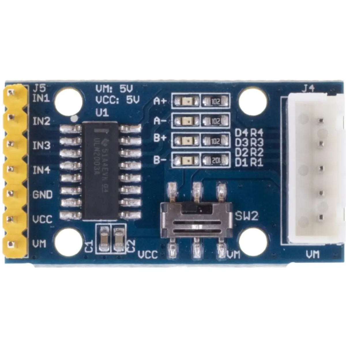 Esta versão do Driver de Motor Stepper é uma das mais clássicas de toda a série e este dispositivo padrão provou a sua polivalência e versatilidade numa vasta gama de aplicações, incluindo solenóides, relés, lâmpadas, pequenos motores, LEDs e etc. Além disso, pode funcionar numa vasta gama de temperaturas (cerca de - 40°C a 105°C).