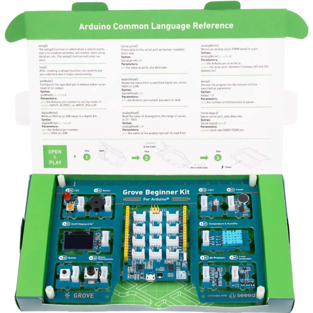No entanto, existe a solução para esses problemas com este Kit para Iniciantes Grove para Arduino®, poderá começar de uma forma simples a dar os primeiros passos de Arduino.