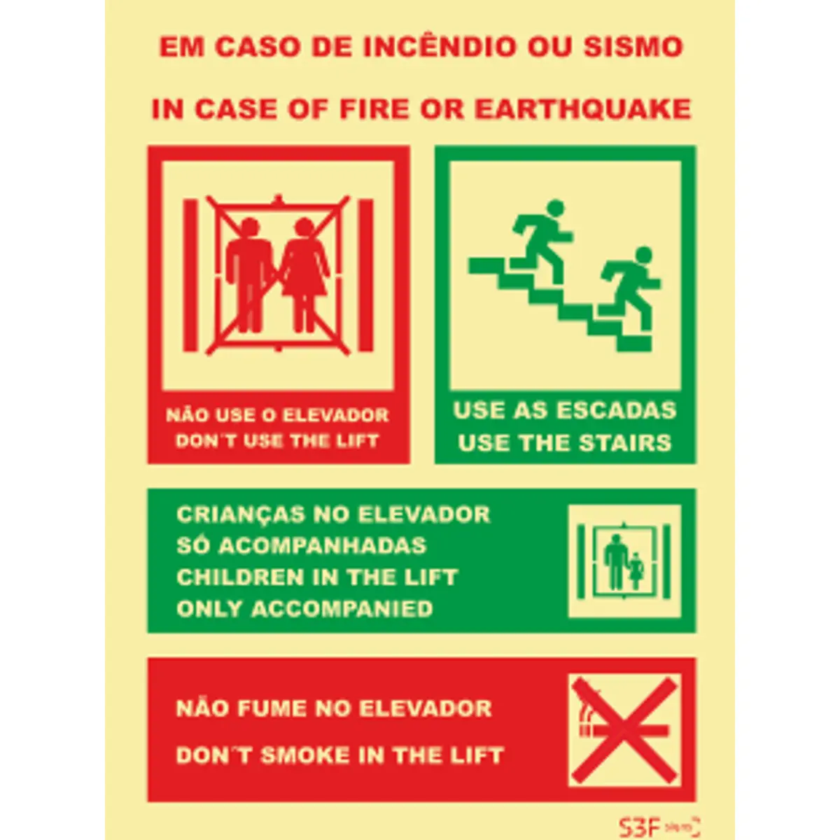 Placa de sinalização fotoluminescente ''Em caso de Emergência ou Sismo'' (2 Línguas) - 150x200mm
