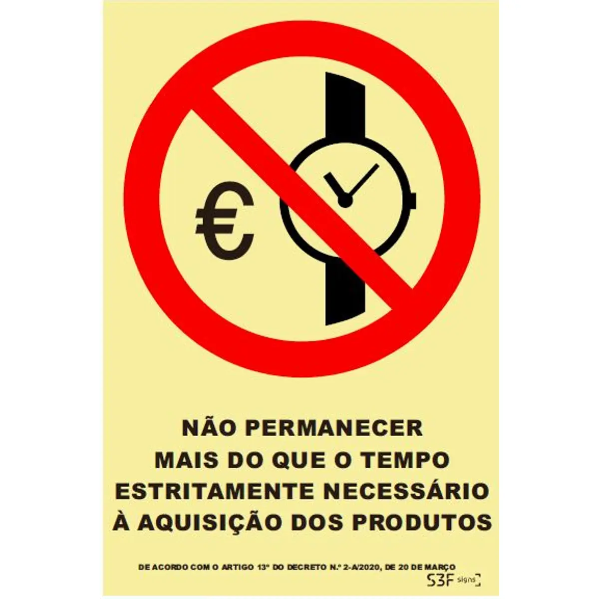 Placa de sinalização PVC ''Não permanecer mais do que o tempo necessário'' - 150x200mm