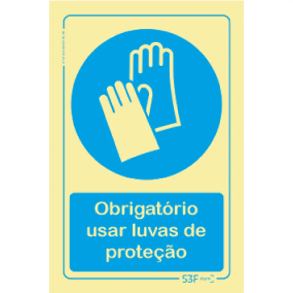 Placa de sinalização fotoluminescente ''Obrigatório usar luvas de proteção'' - 150x200mm