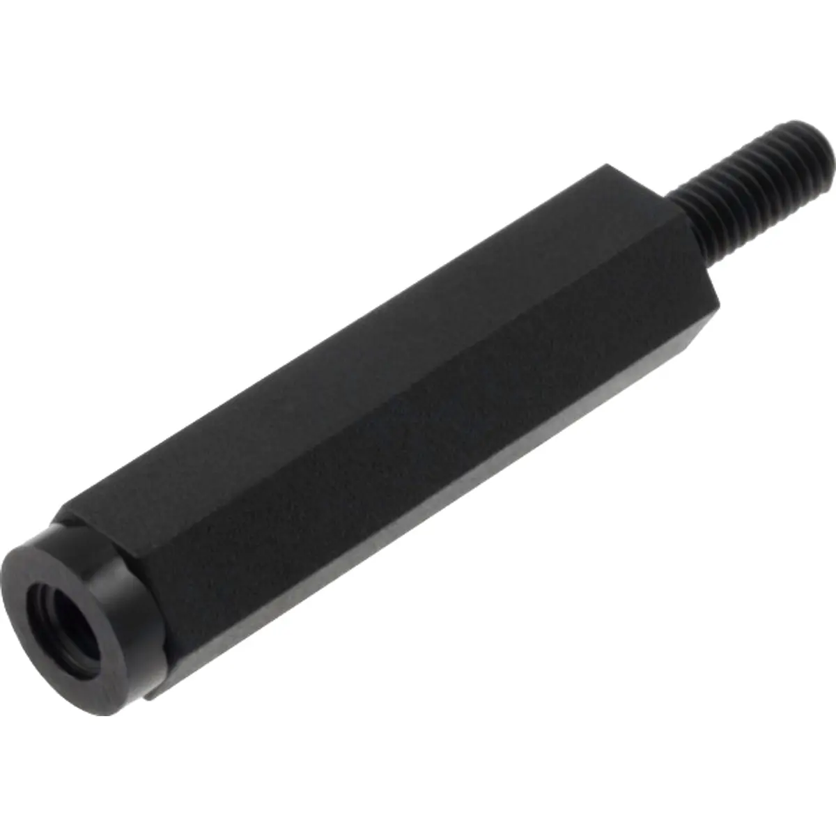 O espaçador fêmea/macho M3 em poliamida, com 10 mm de espaçamento, possui roscas M3 internas e externas, formato hexagonal e chave de 6 mm para aperto. Ideal para montagem de peças com roscas M3 em aplicações mecânicas, oferecendo leveza e durabilidade. Fabricado em poliamida preta, é adequado para estruturas que necessitam de separação precisa entre componentes.