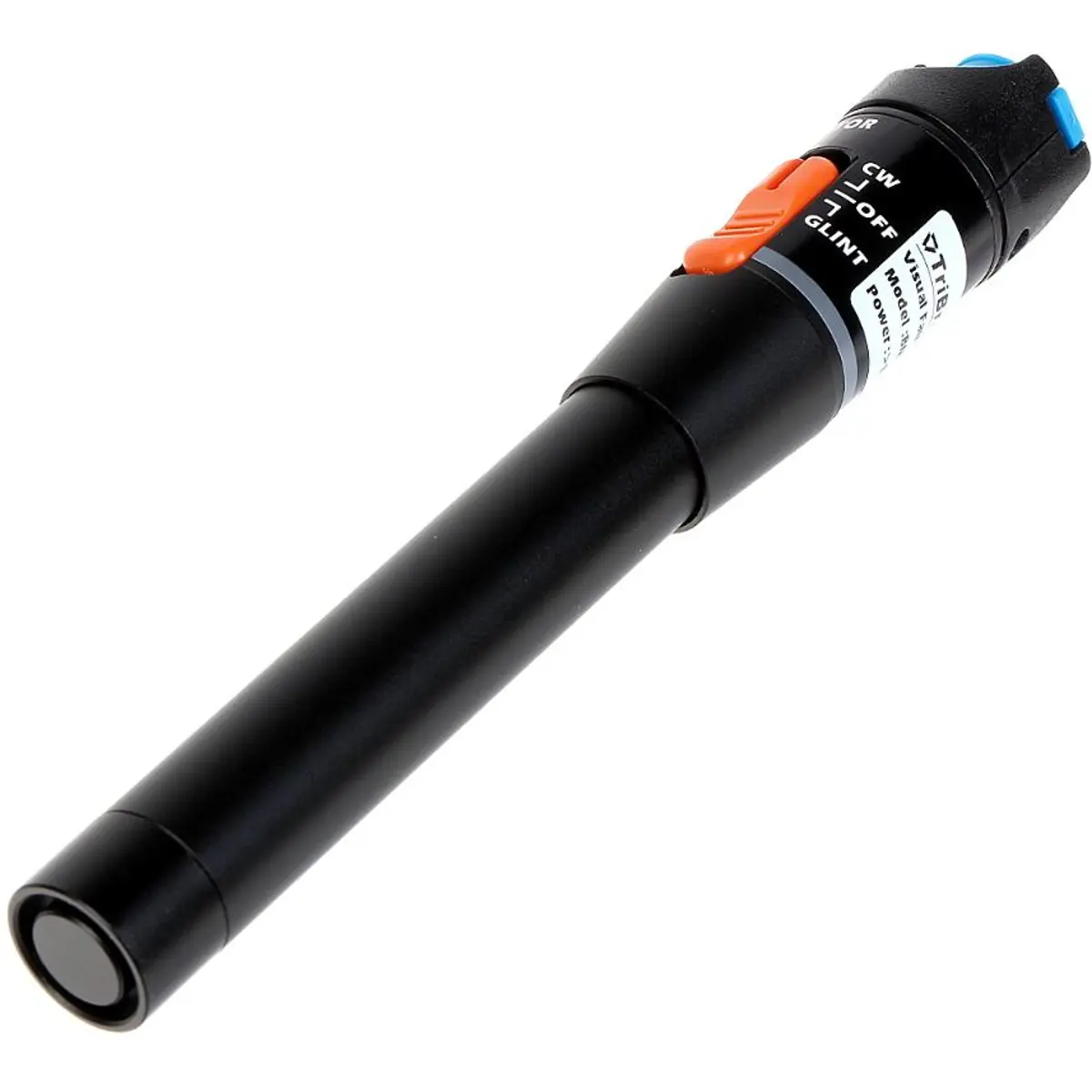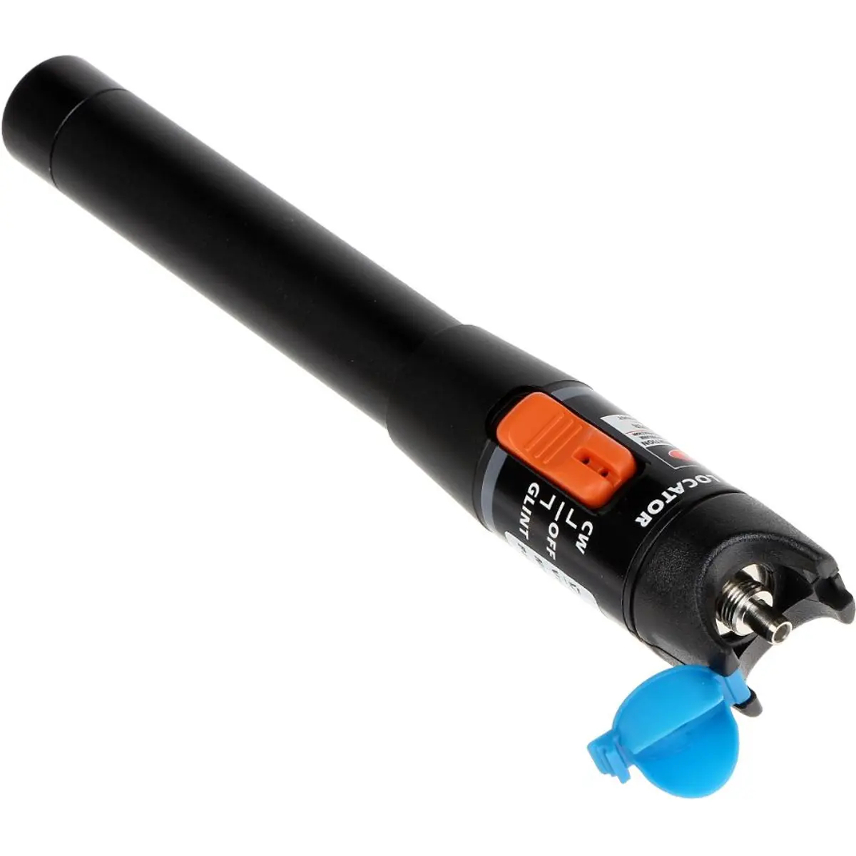 Este testador de laser de fibra óptica funciona como localizador visual de falhas (VFL) para danos na fibra, emitindo luz visível de 650 nm. Com potência de saída superior a 10 mW e alcance máximo de 10 km, permite verificar cabos à distância. Opera em modo contínuo (CW) ou pulsado (GLINT). Possui conector universal para padrão 2.5 mm (SC/FC/ST) e é compatível com fibras monomodo e multimodo. Construído em alumínio com revestimento em pó, é compacto e vem com estojo; alimenta-se com 2 x 1.5 V AA (não incluídas). Peso 0,08 kg sem baterias; Dimensões Ø27 x 176 mm.