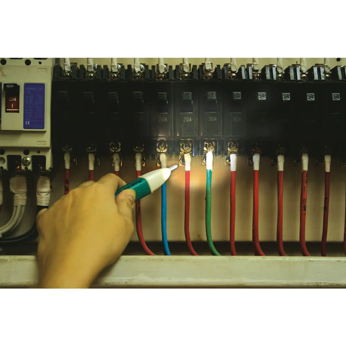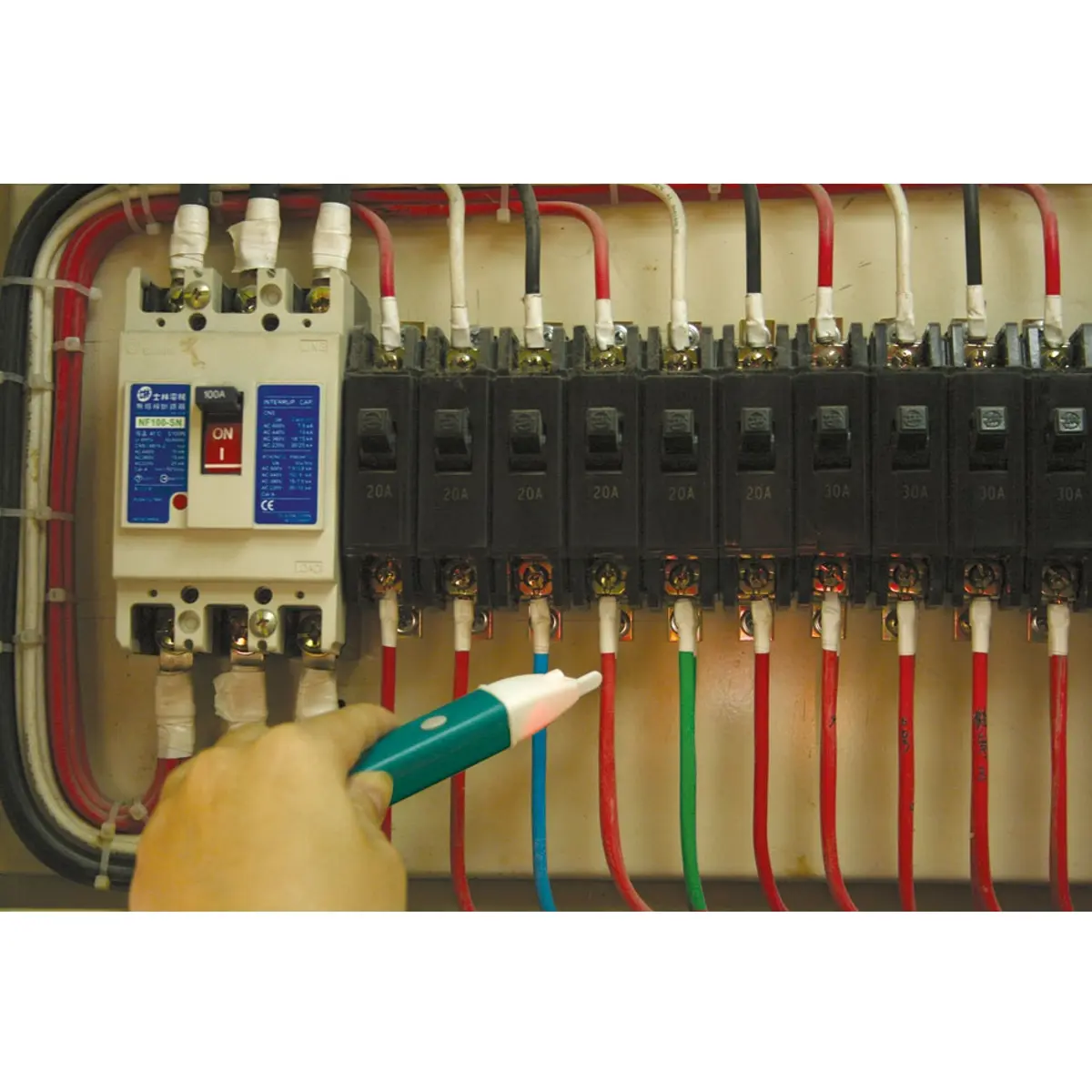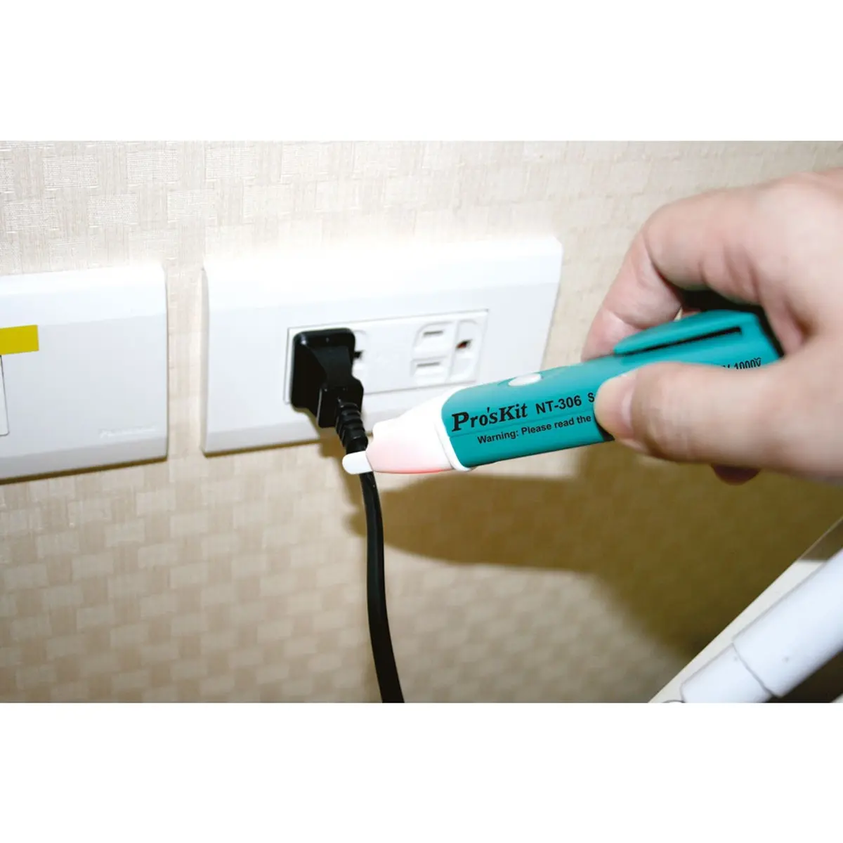 Detector de tensão sem contato. Este detector fornece uma alternativa simples e segura para utilizadores domésticos e eletricistas profissionais. Detecta o estado de um circuito elétrico sem a necessidade de tocar ou conectar um dispositivo na rede. As informações sobre se um circuito está ativo são por meio de iluminação LED e som intermitente. O teste de circuito é para tensões de 90V a 1000Vac. Tamanho compacto com clip, incorpora luz LED para trabalhos com pouca luz.