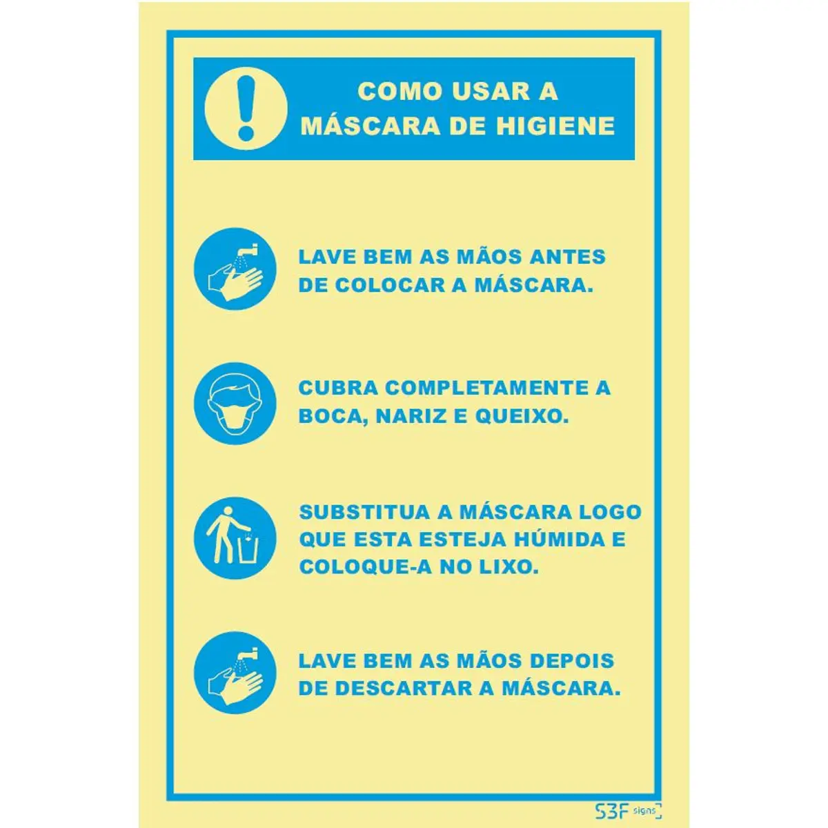 Placa de sinalização PVC ''Como usar a máscara de higiene'' - 150x200mm