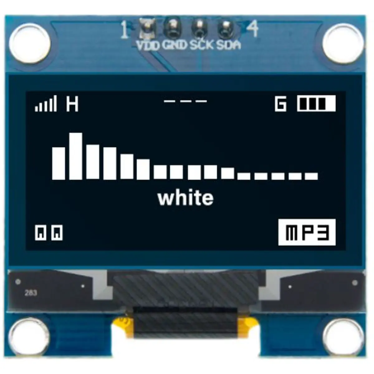 - Funciona em I2C (padrão no endereço 0x3C/0x78)