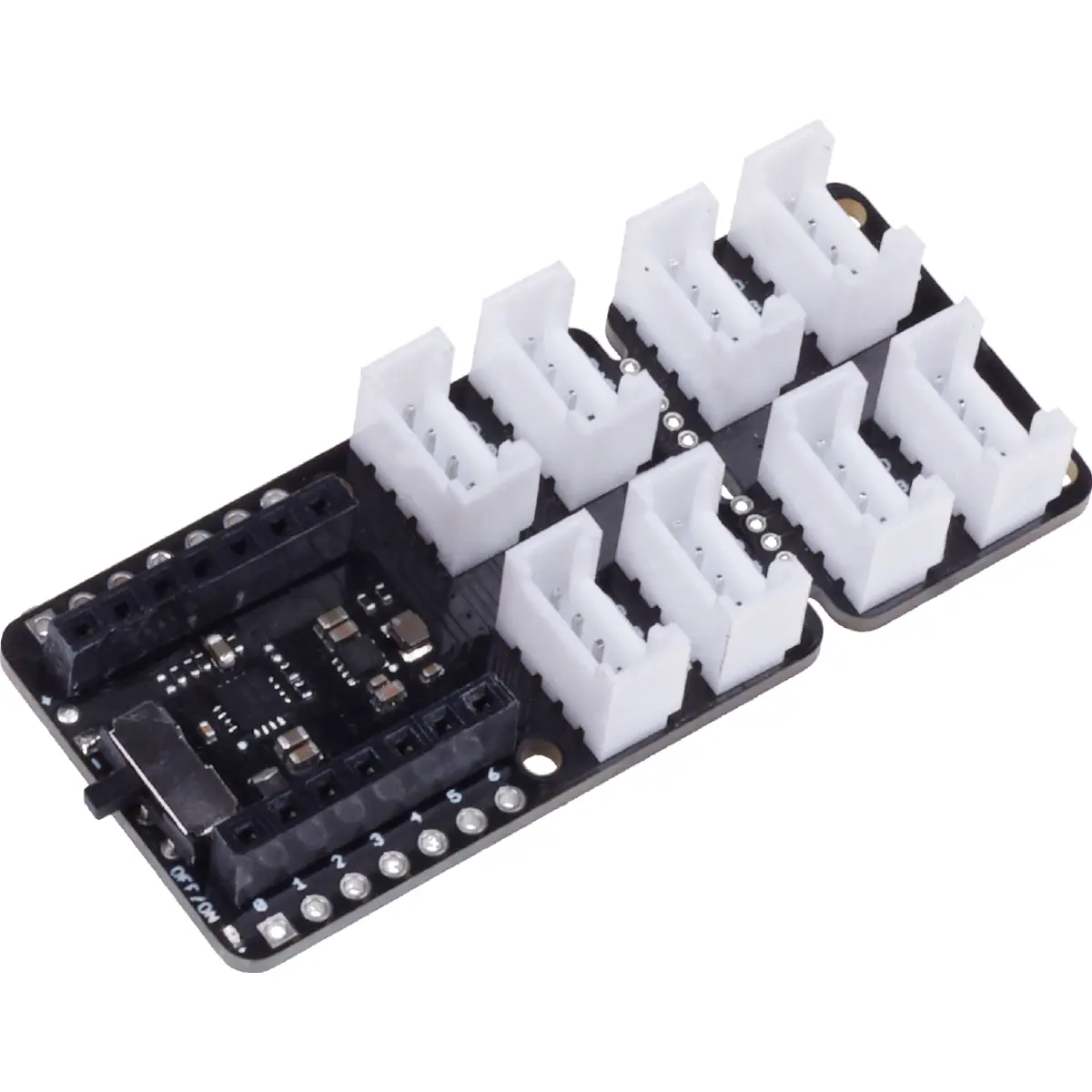 Placa de extensão Grove plug-and-play para Seeeduino XIAO. Esta blindagem ajuda você a se livrar dos fios de jumper e do trabalho de solda retirando os pinos do Seeeduino XIAO e se expandindo para 8 conectores Grove, incluindo dois Grove IIC e um UART. Atua como uma ponte para o Seeeduino XIAO e o sistema Seeed's Grove, que fornece mais de 300 módulos Grove diferentes, incluindo sensor, atuador, comunicação, display, etc. Chega de cabos de jumper e soldadurads, você pode criar mais projetos com Seeeduino XIAO facilmente e rapidamente.