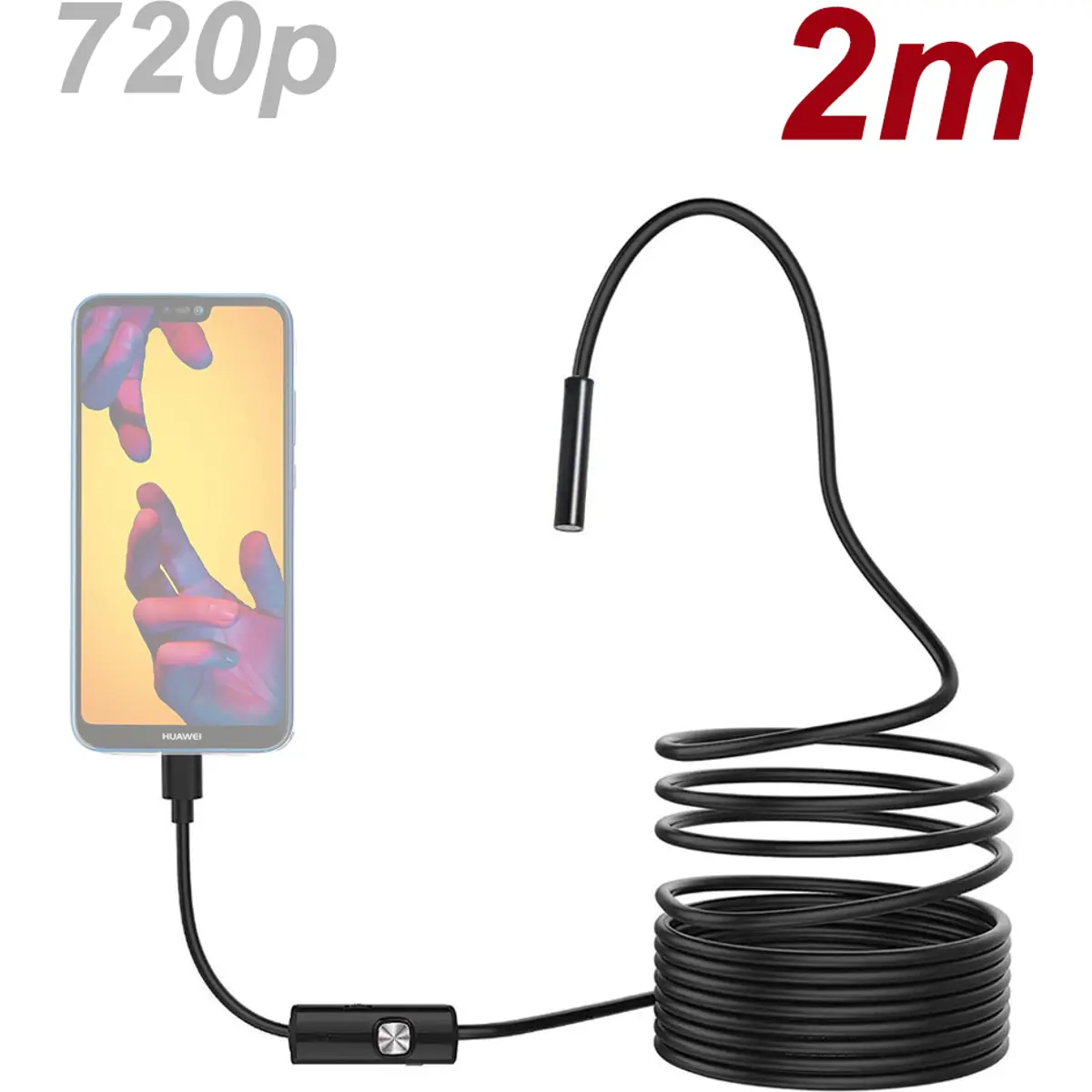 Câmara de inspecção visual (boroscópio) 720P Ø8mm USB de cabo semi-rígido para computador e Android - 2m