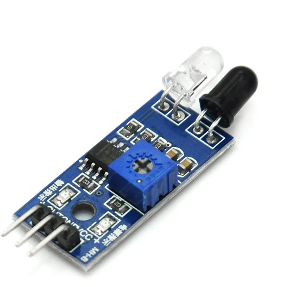 Os sensores transmissores emitem frequência infravermelha. Se o sensor IR captar um objecto que reflita (cor branca), o sinal infravermelho é refletido para o receptor. Como consequência, o pino de saída OUT é colocado em nível baixo (0), e o led verde do módulo acende, indicando que algum obstáculo foi detectado. Se a superficie do obstáculo for de cor preta, a radiação infravermelha não é refletida. Isto permite que o sensor reconheça linhas pretas em fundo branco (e vice-versa) permitindo ao seu robôt seguir essa linha.