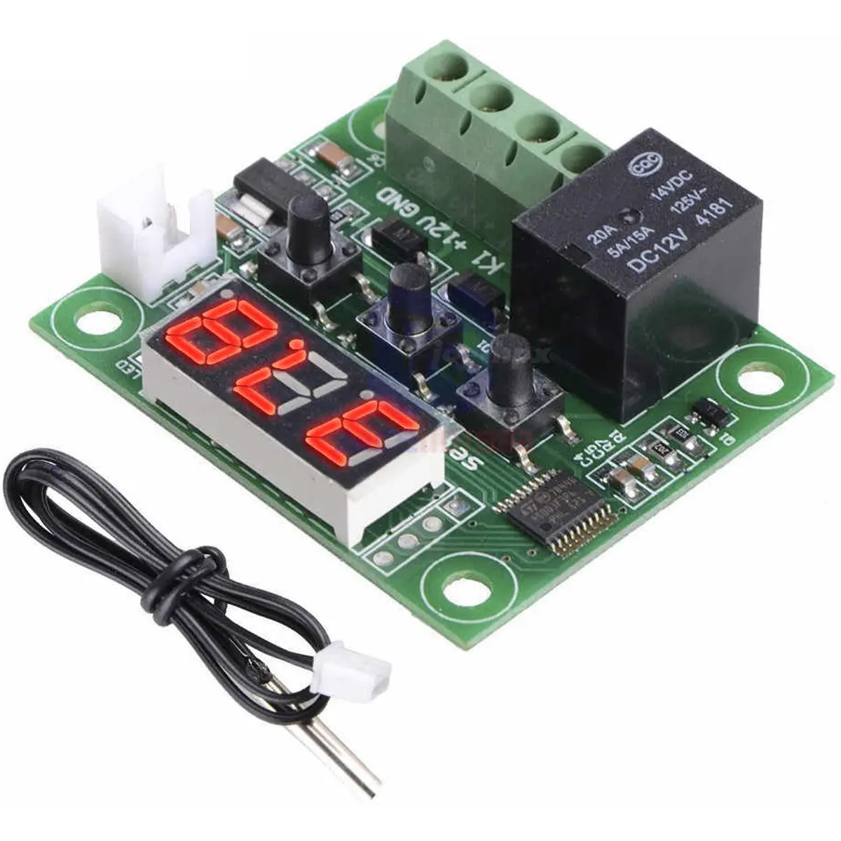 Este módulo W1209 é um termostato digital ideal para controle de temperatura em ambientes. O Módulo possui um relé que pode ser programado para acionar quando atingido um certo valor de temperatura.