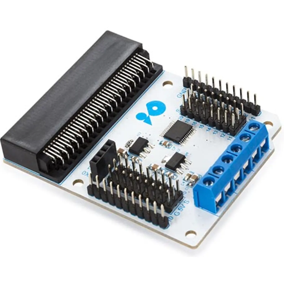 Esta placa de distribuição confere ao seu micro:bit a capacidade de acionar dois motores de corrente contínua (DC). É a escolha ideal para quem quer criar robôs móveis.