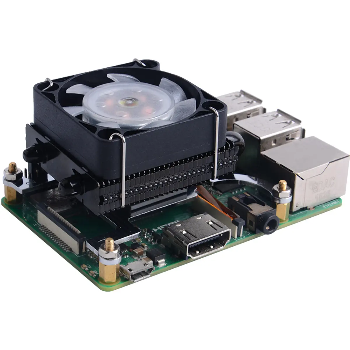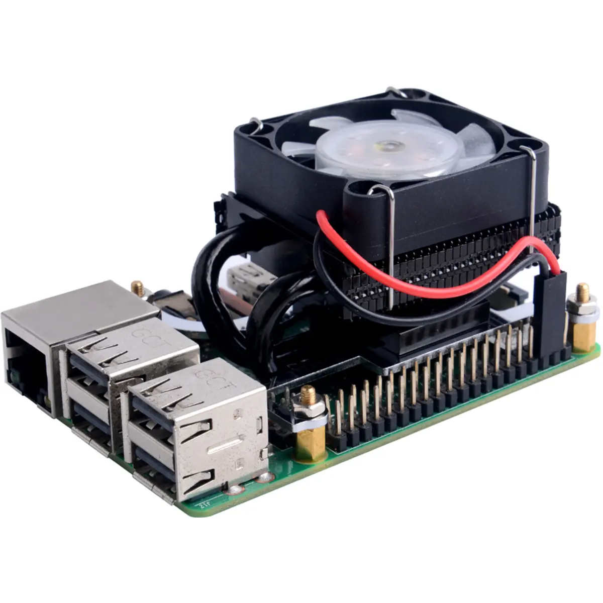 Ventoinha de arrefecimento de baixo perfil com iluminação RGB, concebida para as placas 3B, 3B+ e 4B. Proporciona uma melhor dissipação de calor e estética, com LEDs que piscam para um visual atraente. A instalação é simples, permitindo encaixar a ventoinha juntamente com a placa em caixas de baixo perfil. Compatível com caixas de baixo perfil, facilita o arrefecimento ativo sem aumentar muito o espaço ocupado. Ideal para projetos de miniaturização que exigem arrefecimento eficiente com recursos visuais.