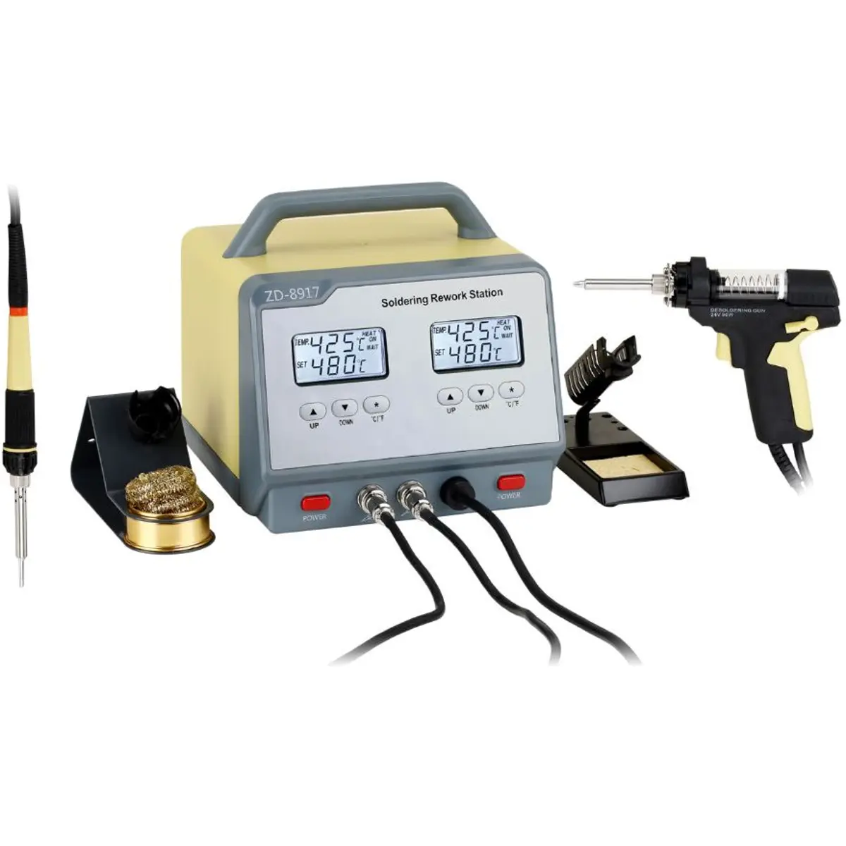 - Estação completa com ferro de soldar, pistola dessoldadora e suportes de ferros com esponja e esponja de metal