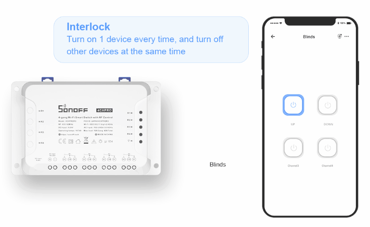 O Sonoff 4CH Pro R3 ITEAD integra um módulo receptor 433MHz RF, que possibilita o switch ser controlado por comando RF. É um switch inteligente sem fio WiFi universal de 4 canais para o sistema de casa no qual possibilita ligar / desligar remotamente e eletrodomésticos e dispositivos eletrónicos através da APP Android/iOS App eWeLink ou via comando RF 433MHz.
