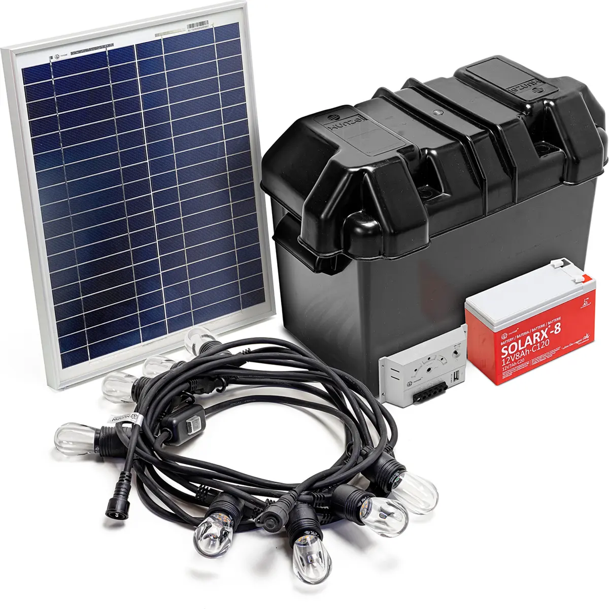 Xunzel S-LINE 20-08S - Kit completo de iluminação LED e geração elétrica para sistemas isolados c/ bateria solar 20W + 8x lâmpadas LED 4000K