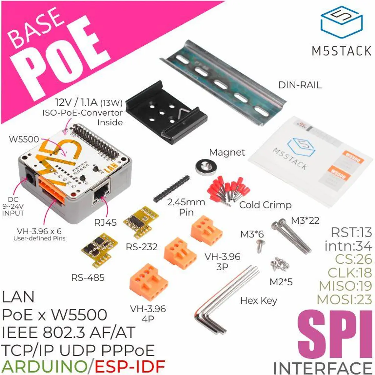 Implementa um chip controlador Ethernet W5500 com módulo PoE, que fornece controle Ethernet integrado TCP / IP com fio para facilitar a conexão à Internet com sistemas integrados. O W5500 integra pilha de protocolo TCP / IP, camada de enlace de dados Ethernet 10/100 M (MAC) e camada física (PHY). Esta base suporta comunicação RS485 / RS232 e pode ser usada como um servidor Ethernet para porta serial. É projetado especificamente para aplicações industriais. A tecnologia PoE (Power over Ethernet) é suportada. Por meio do módulo PoE integrado, a energia pode ser fornecida diretamente à base por meio do hub / switch PoE sem uma fonte de alimentação separada. Ele vem com um par de conectores HT3.96, trilho de metal e discos magnéticos para fácil instalação. Os 6 pinos do conector HT3.96 são sobressalentes, você pode conectá-los com uma placa adaptadora RS485 ou RS232 conforme desejar.