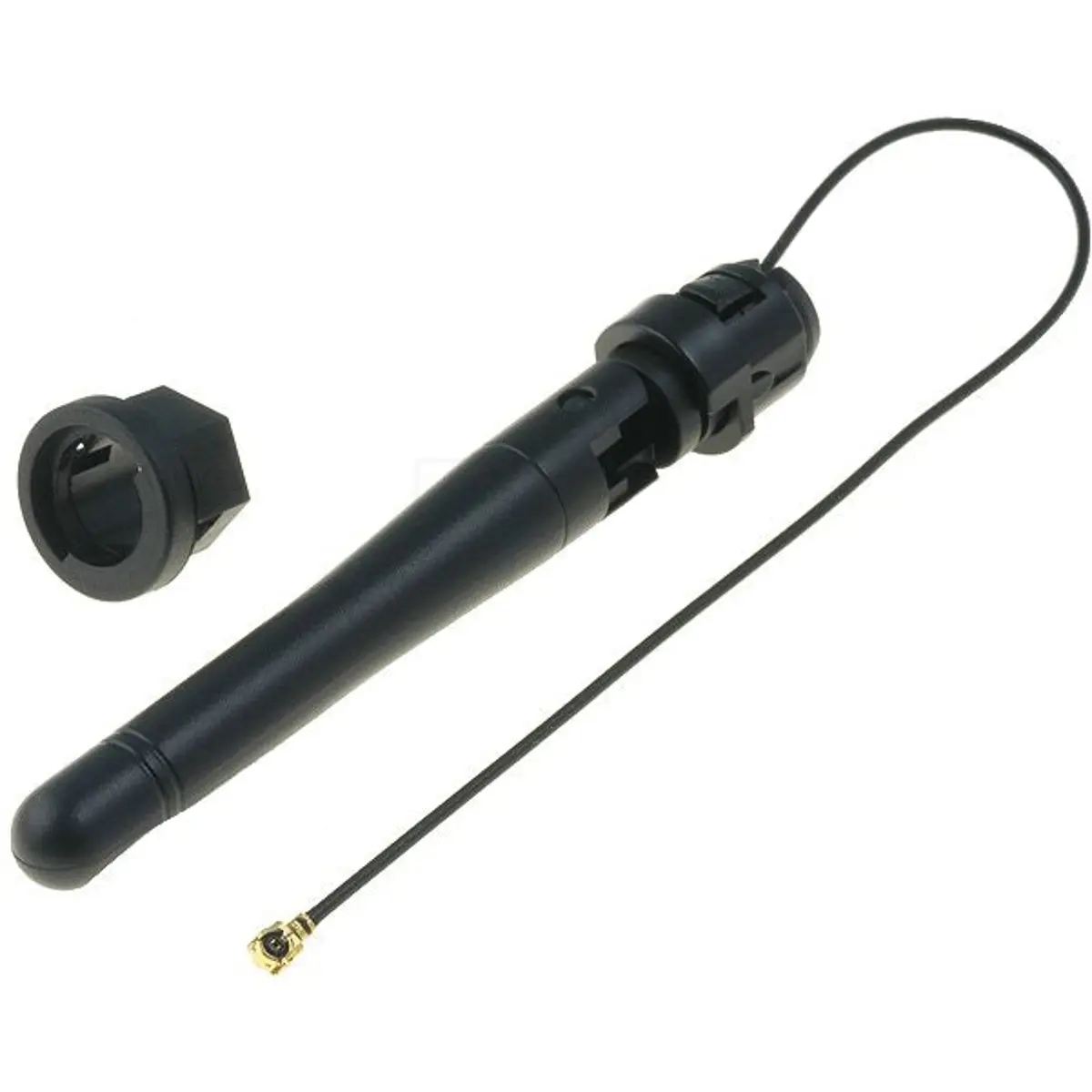 Antena Wi‑Fi de painel para a banda de 2,4 GHz com ganho de 3 dBi e conector I-PEX (u.FL). Ideal para integração em dispositivos com módulos Wi‑Fi de 2,4 GHz, montagem em painel, cabo RG1.13 de 150 mm e comprimento da antena de 62 mm. A espessura do painel varia entre 1 e 1,5 mm, proporcionando uma solução compacta para espaços reduzidos sem comprometer o desempenho de sinal.