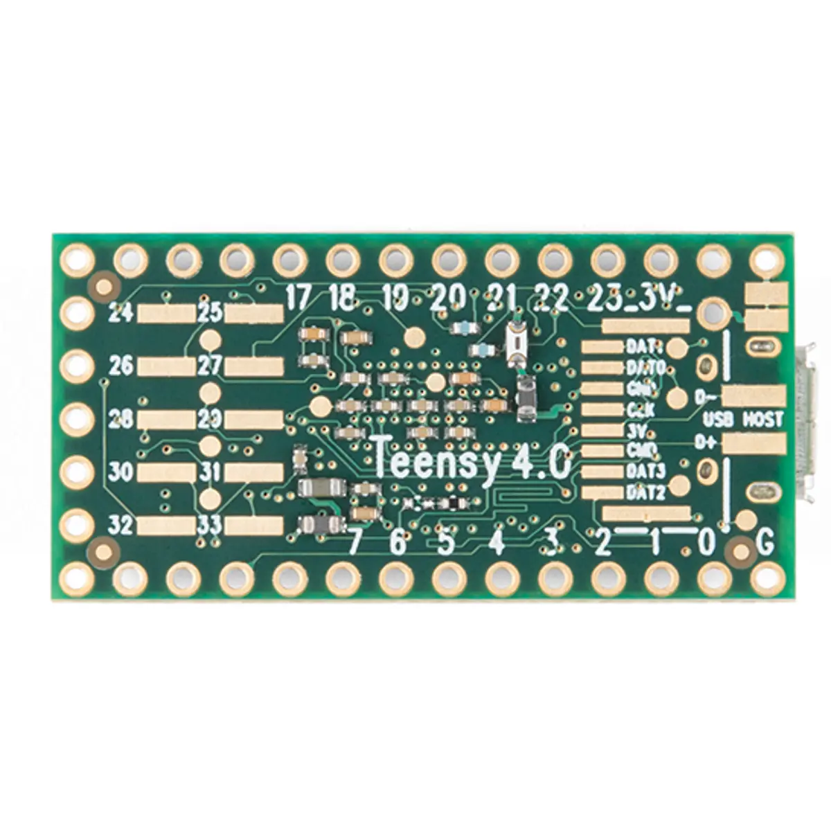 Teensy 4.0 apresenta um processador ARM Cortex-M7 a 600MHz, com um chip NXP iMXRT1062, o microcontrolador mais rápido atualmente disponível. Teensy 4.0 tem o mesmo tamanho e forma que Teensy 3.2, e mantém a compatibilidade com a maioria das funções dos pinos do Teensy 3.2.