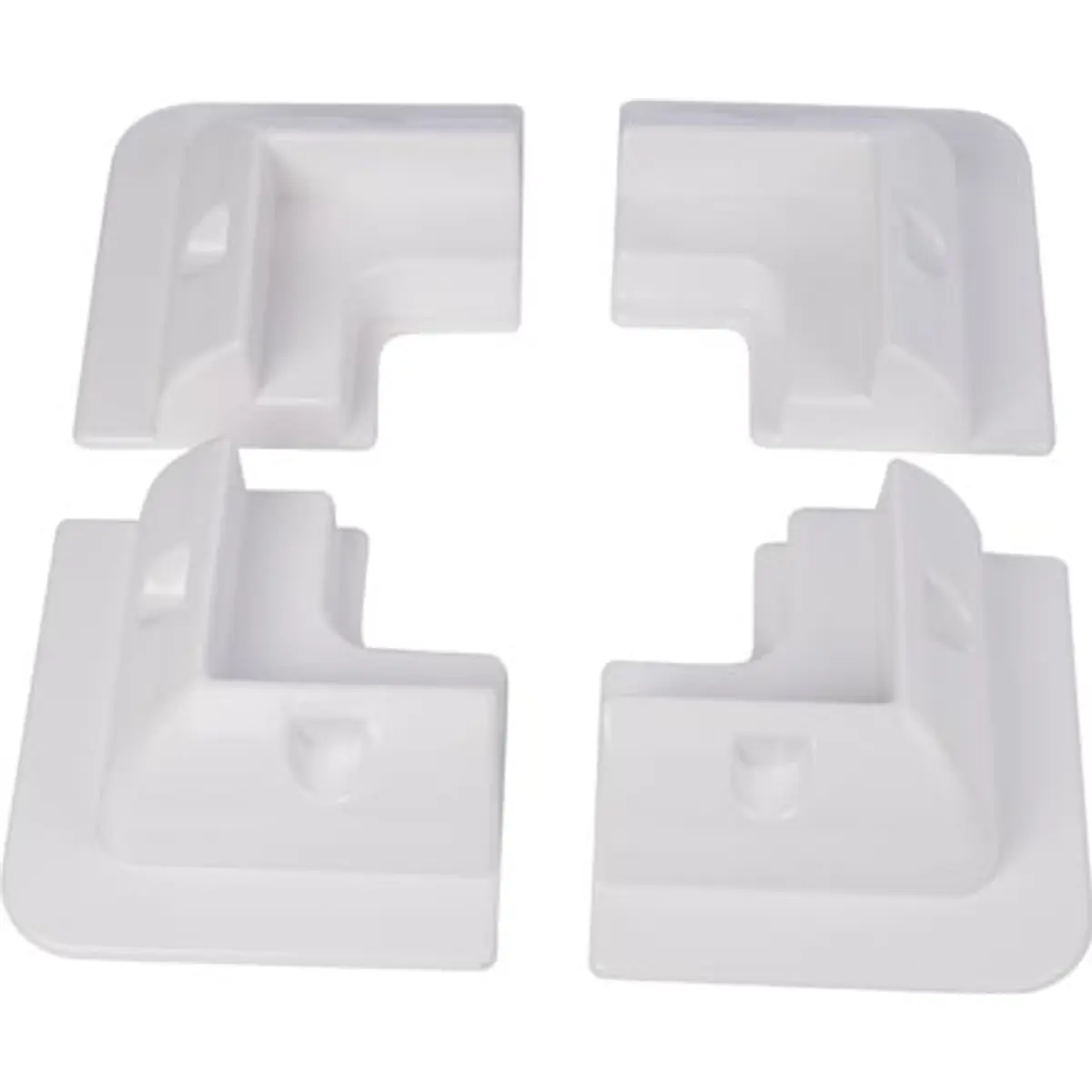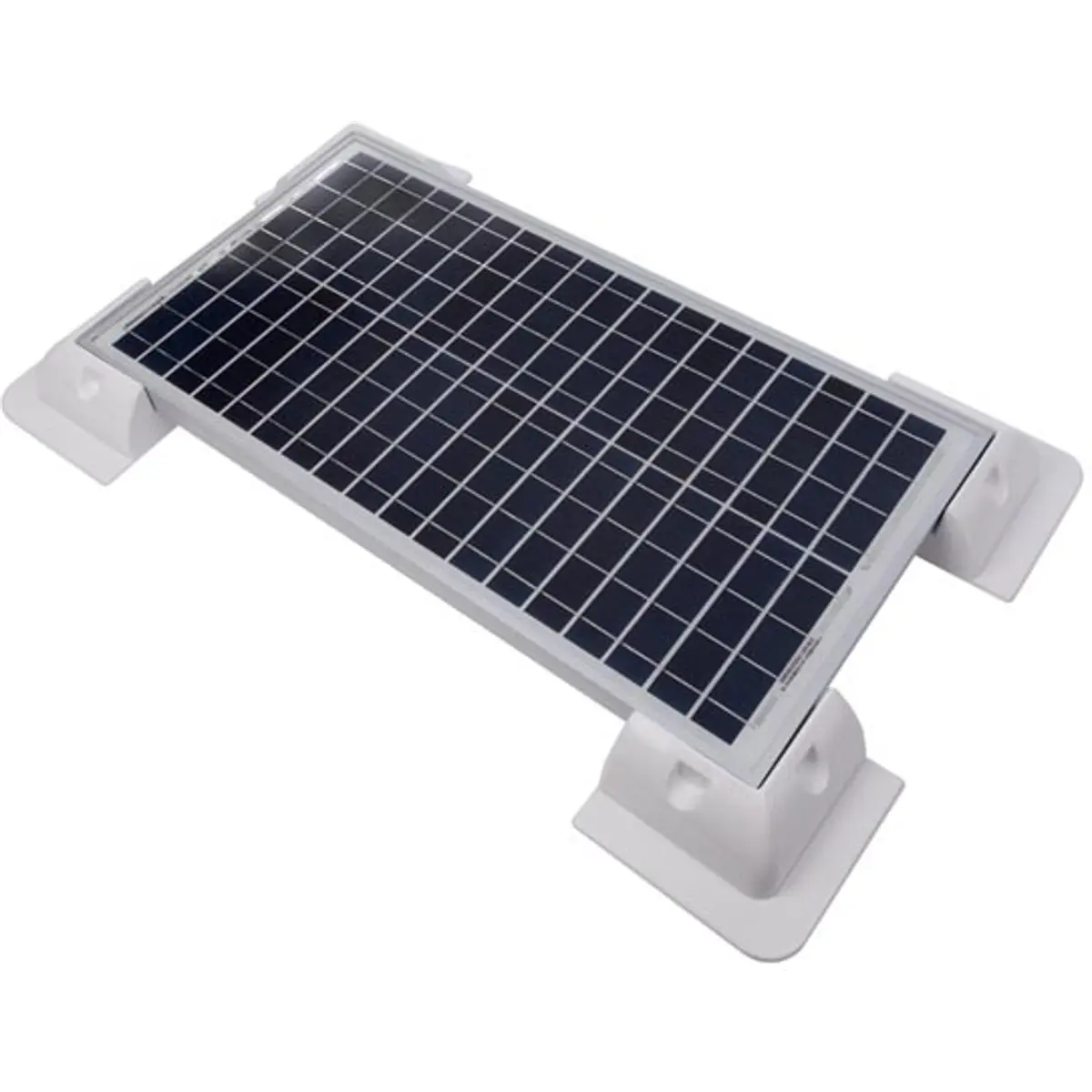 Este kit de montagem universal para painéis solares é indicado para caravanas, autocaravanas e campismo. Fabricado em ABS, com dimensões de 150 x 150 mm por peça e acabamento branco, inclui quatro cantos de suporte para fixação. As peças podem ser aparafusadas ao painel e coladas no telhado ou tejadilho, proporcionando uma solução durável e prática para instalação solar em viaturas.