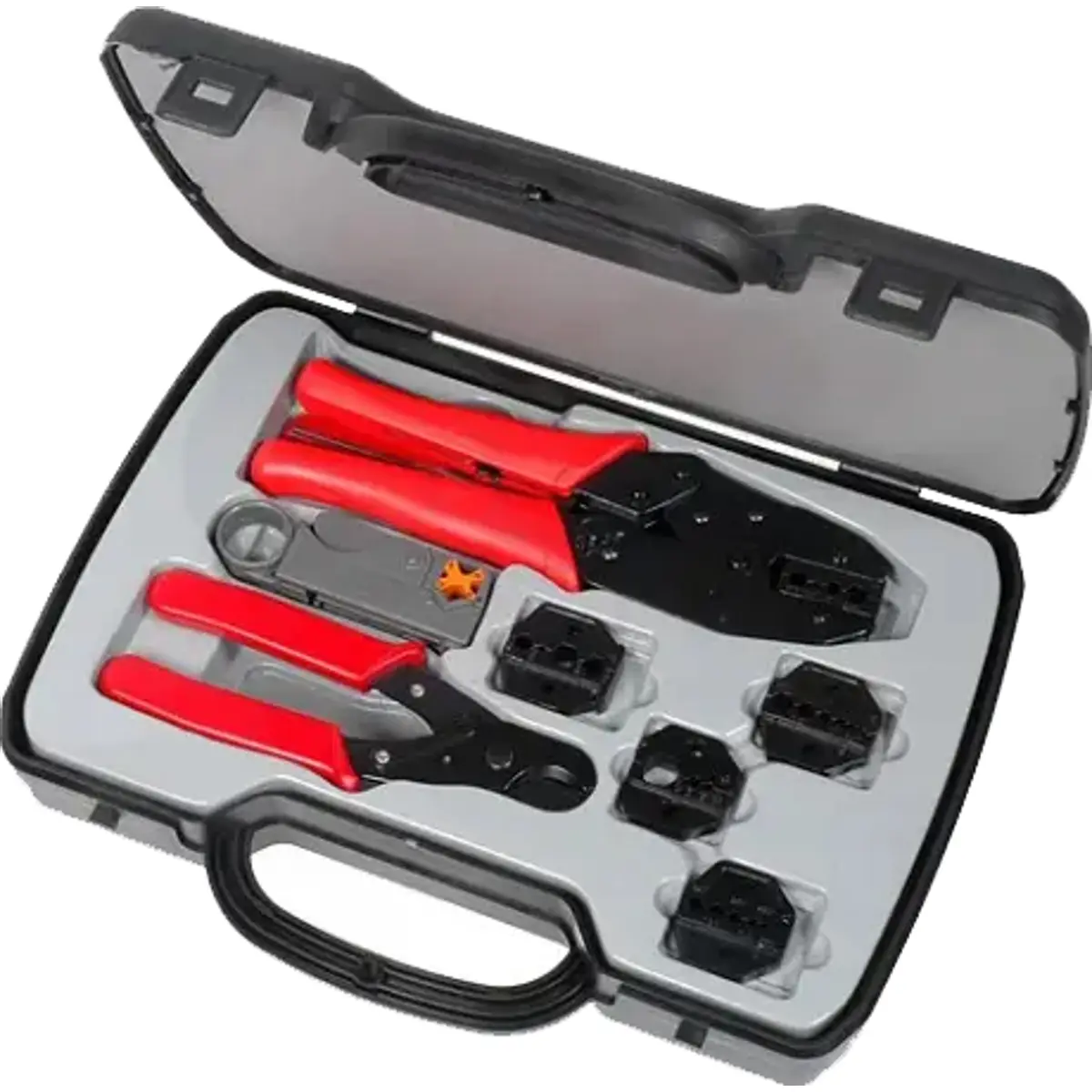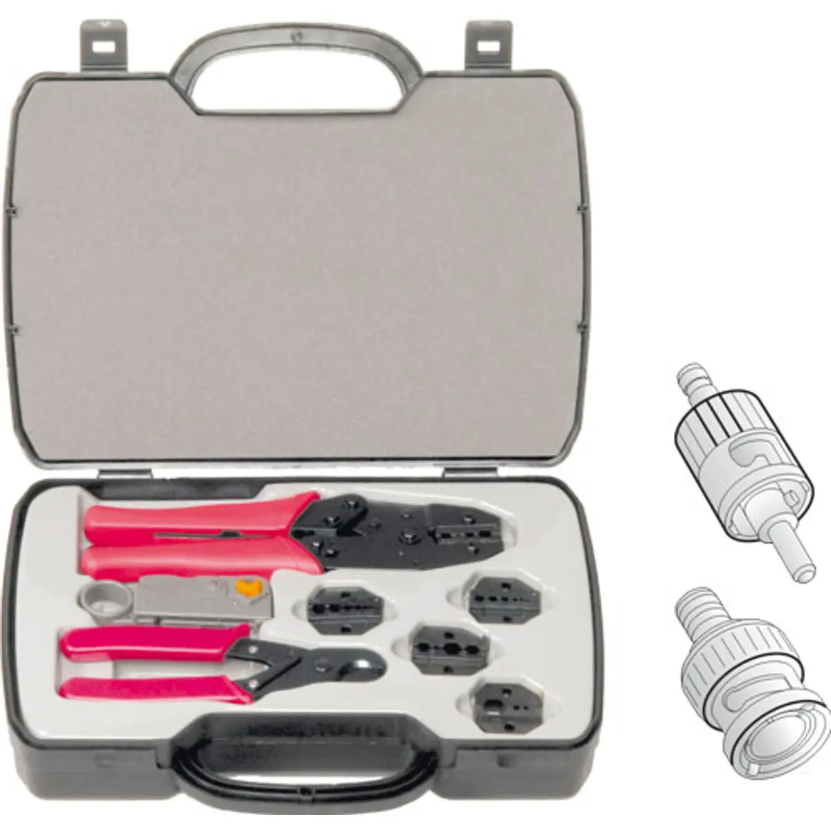 Conjunto de ferramentas para cravar fichas em cabos coaxiais / RF