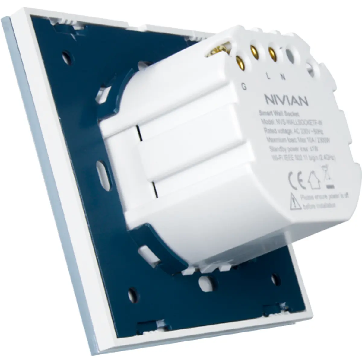 Nivian Smart - Tomada inteligente Schuko de embutir WiFi 2.4GHz (compatível c/ TUYA)
