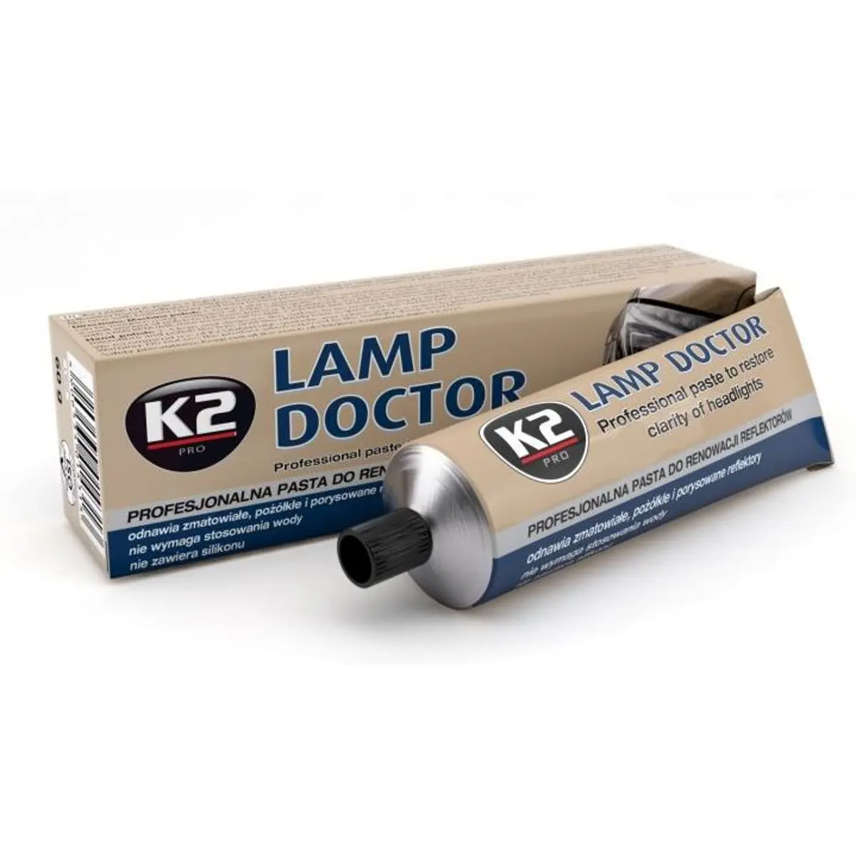 K2 LAMP DOCTOR é uma massa especializada de alta qualidade para regenerar lentes de faróis. Sua fórmula abrasiva altamente eficaz dá uma "segunda vida" a faróis de plástico ou vidro. Se os faróis estiverem opacos, amarelados ou com corrosão na lente, o K2 LAMP DOCTOR resolve esses problemas com excelência. A aplicação pode ser feita manualmente ou com uma máquina de polimento.