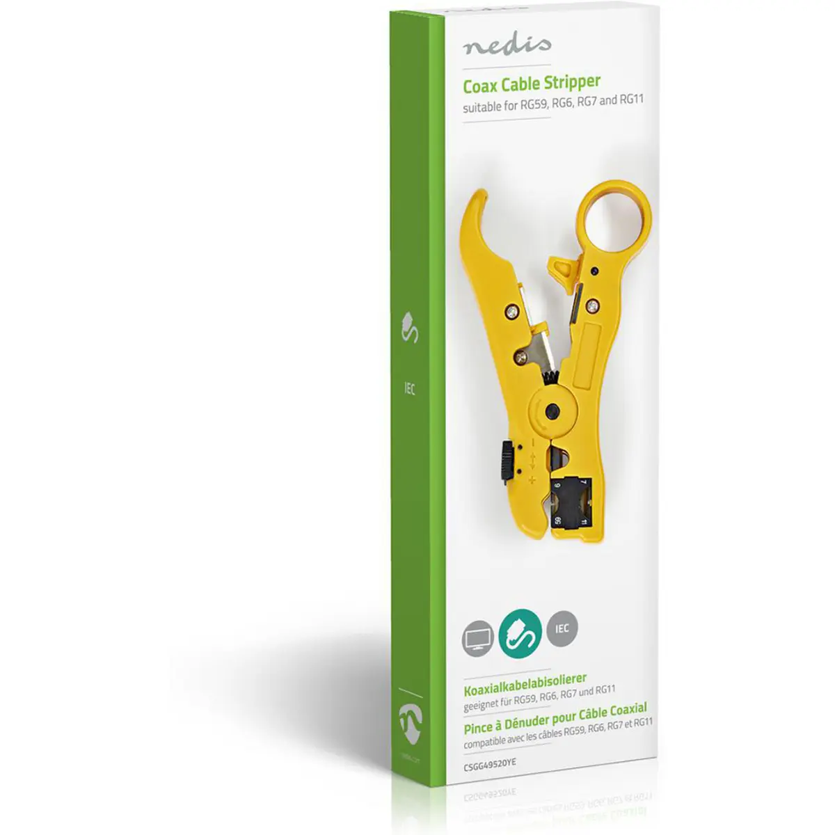 Nedis CSGG49520YE - Descarnador para cabo coaxial RG59, RG6, RG7 e RG11