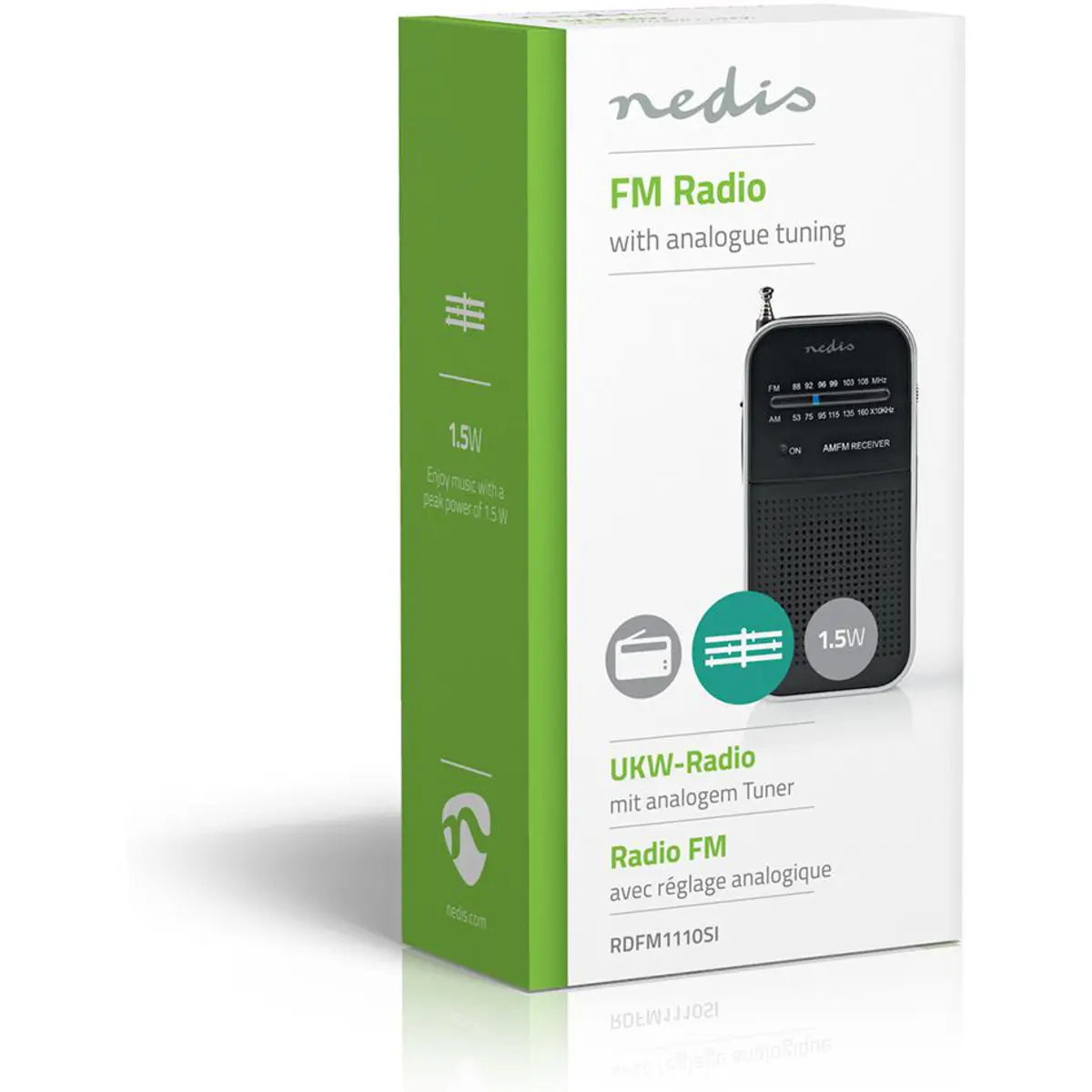Este rádio FM super compacto, de bolso, é fácil de transportar para onde quer que vá. Basta inserir 2 pilhas AAA (não incluídas) para ouvir música em qualquer lugar.