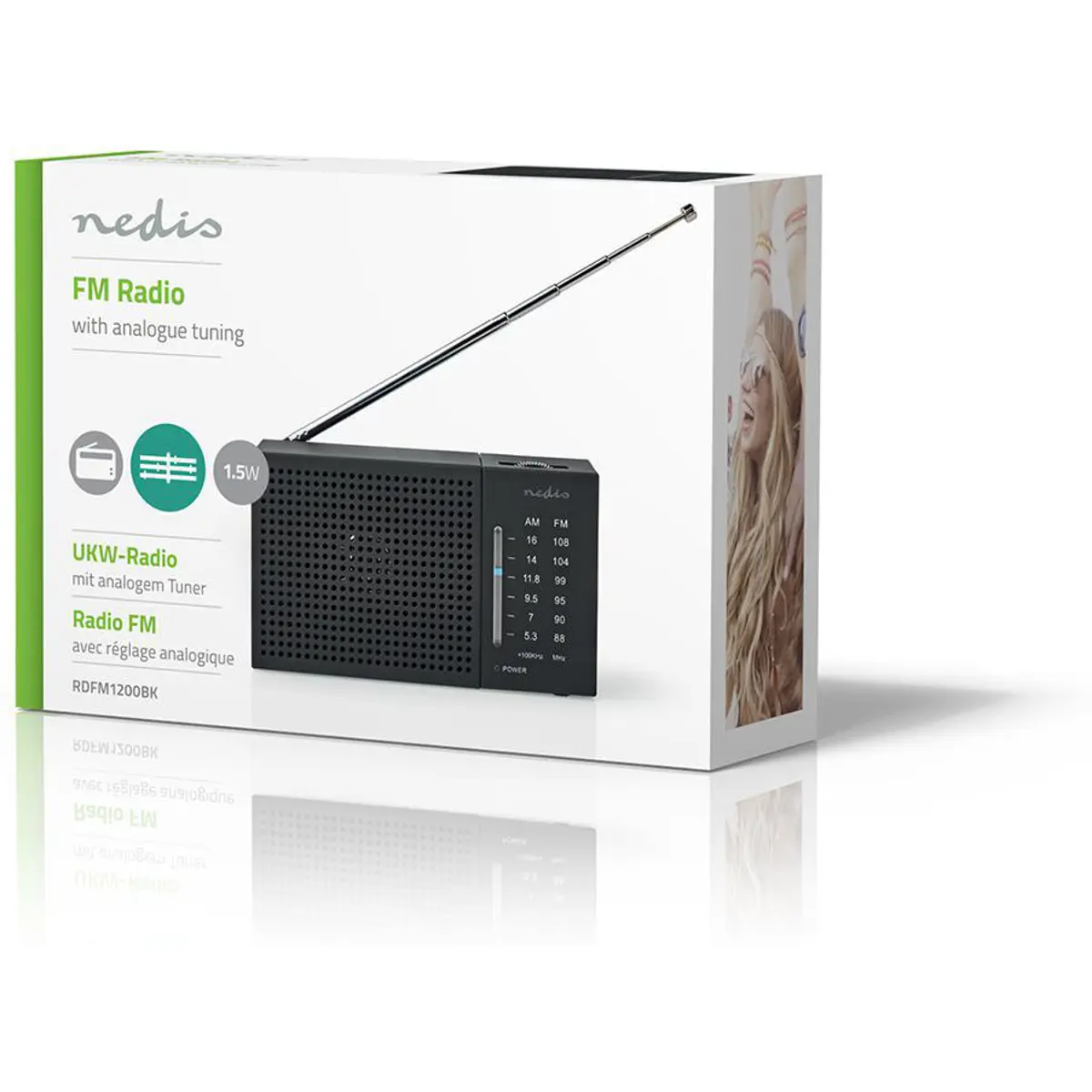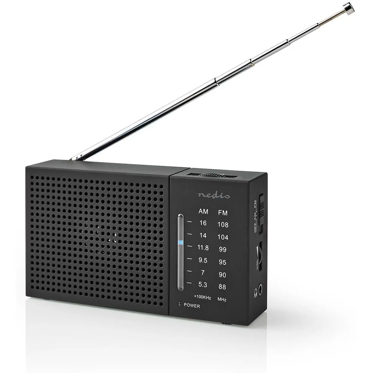 • Com sintonia analógica para selecionar a estação de rádio desejada com a roda analógica