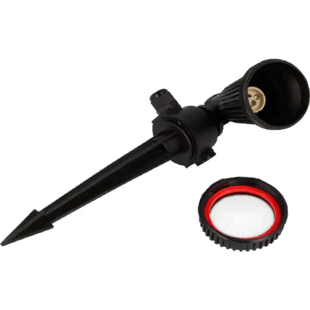 Candeeiro de jardim com casquilho GU10, resistente às intempéries (IP65) e com potência máxima de 35W. Fabricado em nylon e plástico, dispõe de estaca para fixação no solo, tornando-o adequado para iluminação exterior de caminhos, jardins e áreas ao ar livre. Oferece durabilidade, proteção contra água e poeira e montagem simples, ideal para soluções de iluminação exteriores seguras e eficientes.