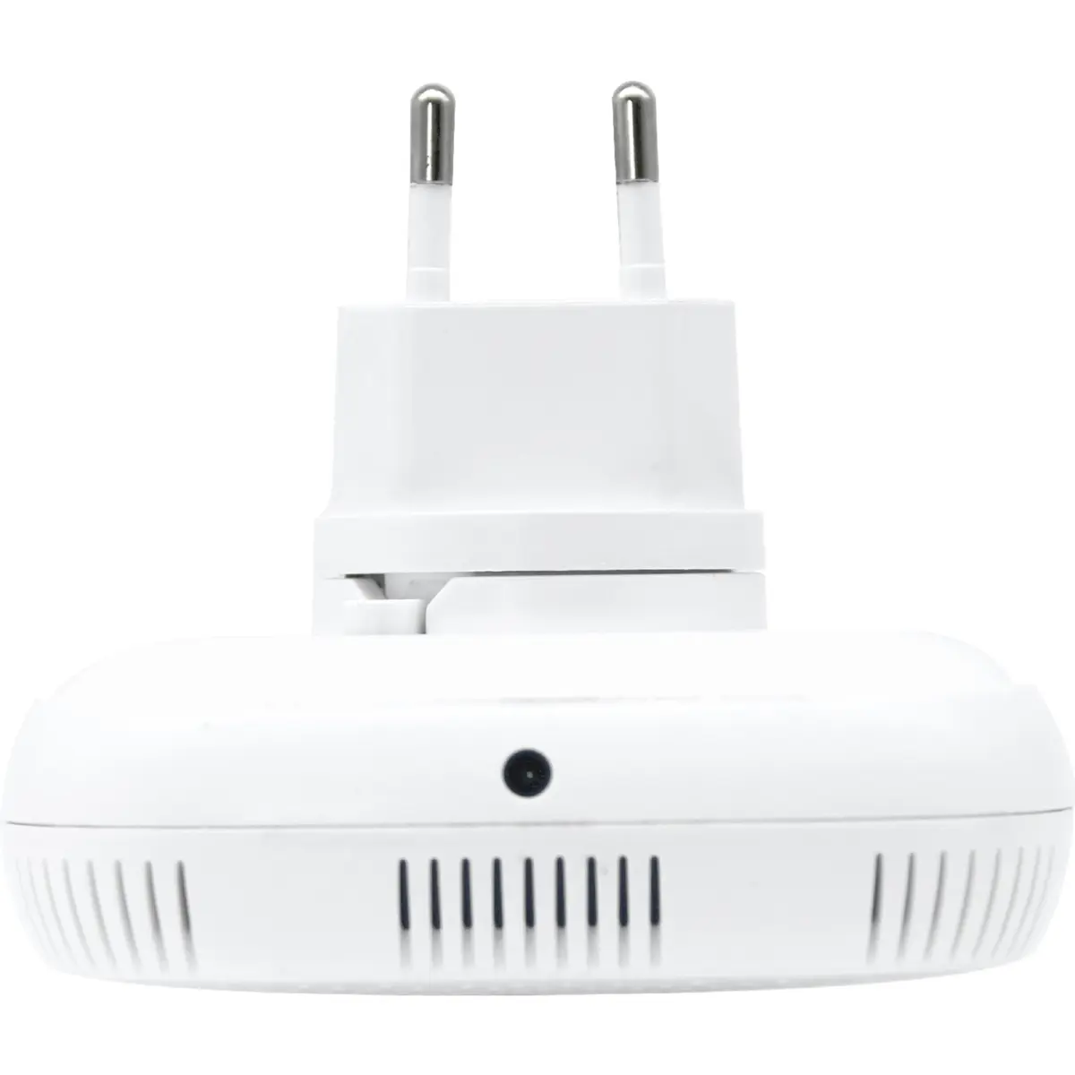 Detetor de gás GLP inteligente com conectividade Wi‑Fi que funciona com propano e butano. Pequeno e sensível, oferece proteção adicional para habitação com alarme sonoro e indicador LED. Suporta alimentação AC entre 110 e 230 V (±10%), não utiliza alimentação DC, e permite controlo local e remoto via Wi‑Fi (802.11 b/g/n) em 2,4 GHz. O alarme atinge 70 dB ou mais com sensibilidade de 6% LEL, e o alcance cobre até 50 m no exterior e até 30 m dentro de casa, operando entre -10 °C e +50 °C.