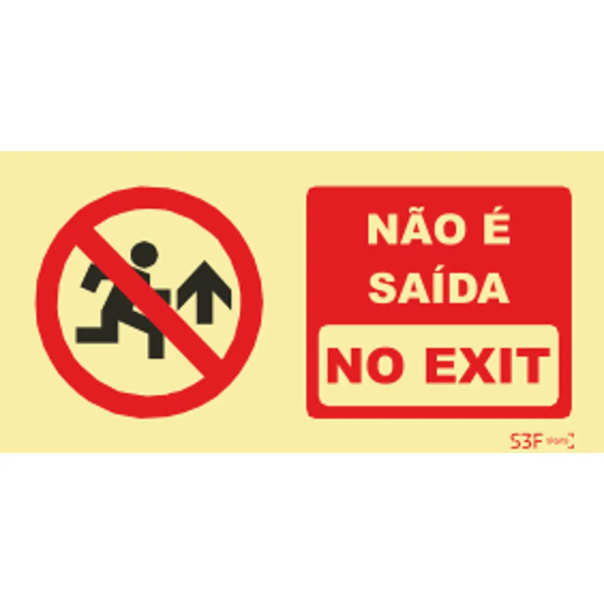 Placa de sinalização fotoluminescente ''Não é Saída - NO EXIT'' - 200x100mm