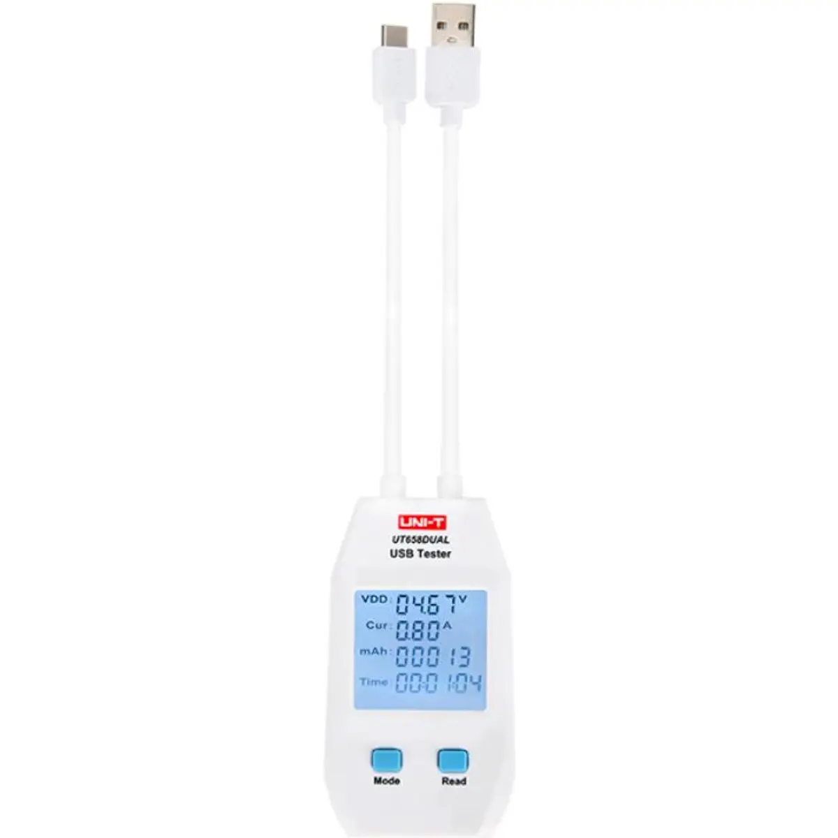 A segunda geração de testadores USB da série UT658 pode testar carregadores USB, fontes de alimentação portáteis, cabos USB tipo A e C e outros dispositivos de carregamento eletrônico. O UT658 mede a tensão de saída, corrente, energia, capacidade, resistência equivalente de circuito, tensões D + e D- de cabos de dados USB. Esta série foi projetada para ser precisa, confiável, estável e portátil.
