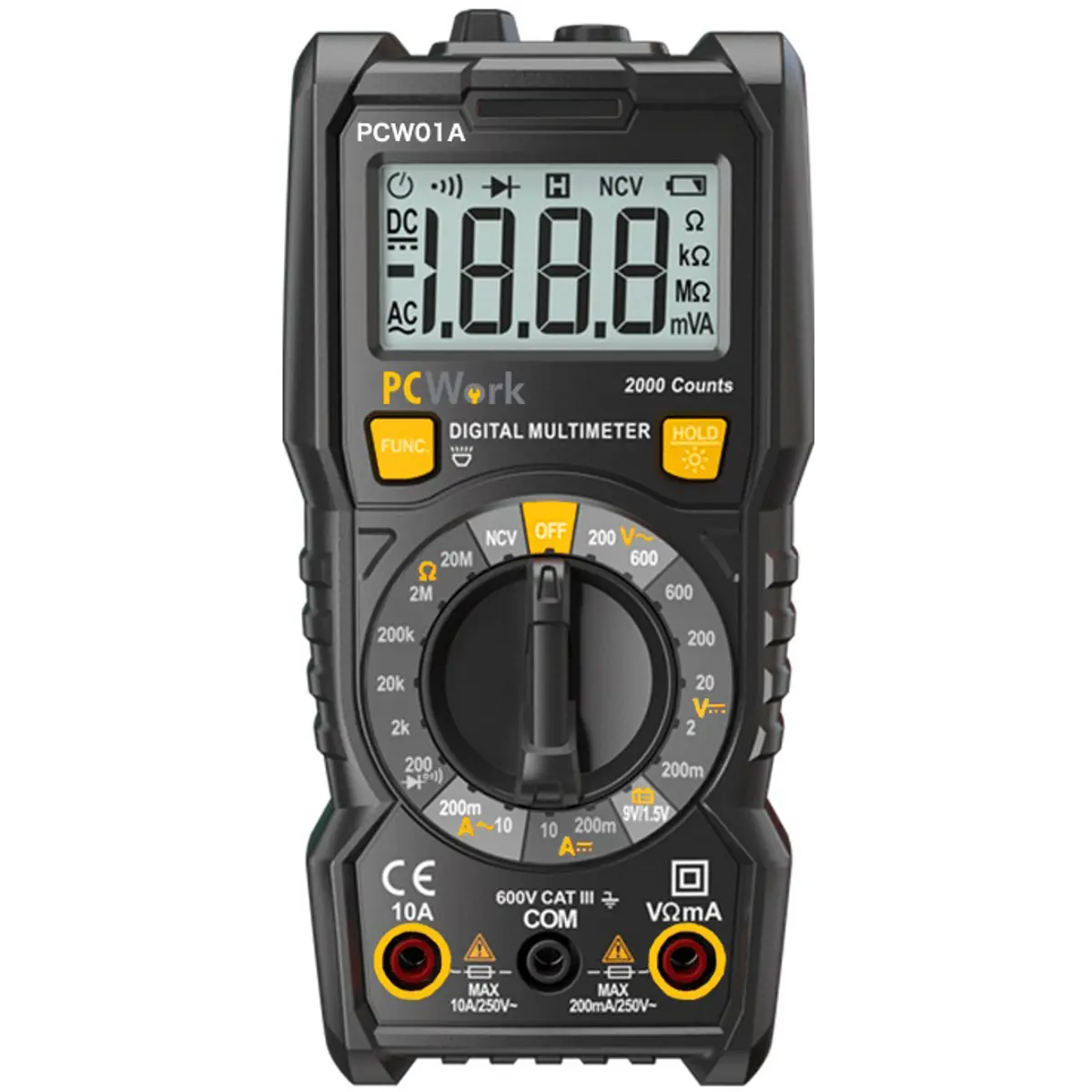 PCWork PCW01A - Multímetro digital (600Vac/dc 10Aac/dc 20MΩ NCV)