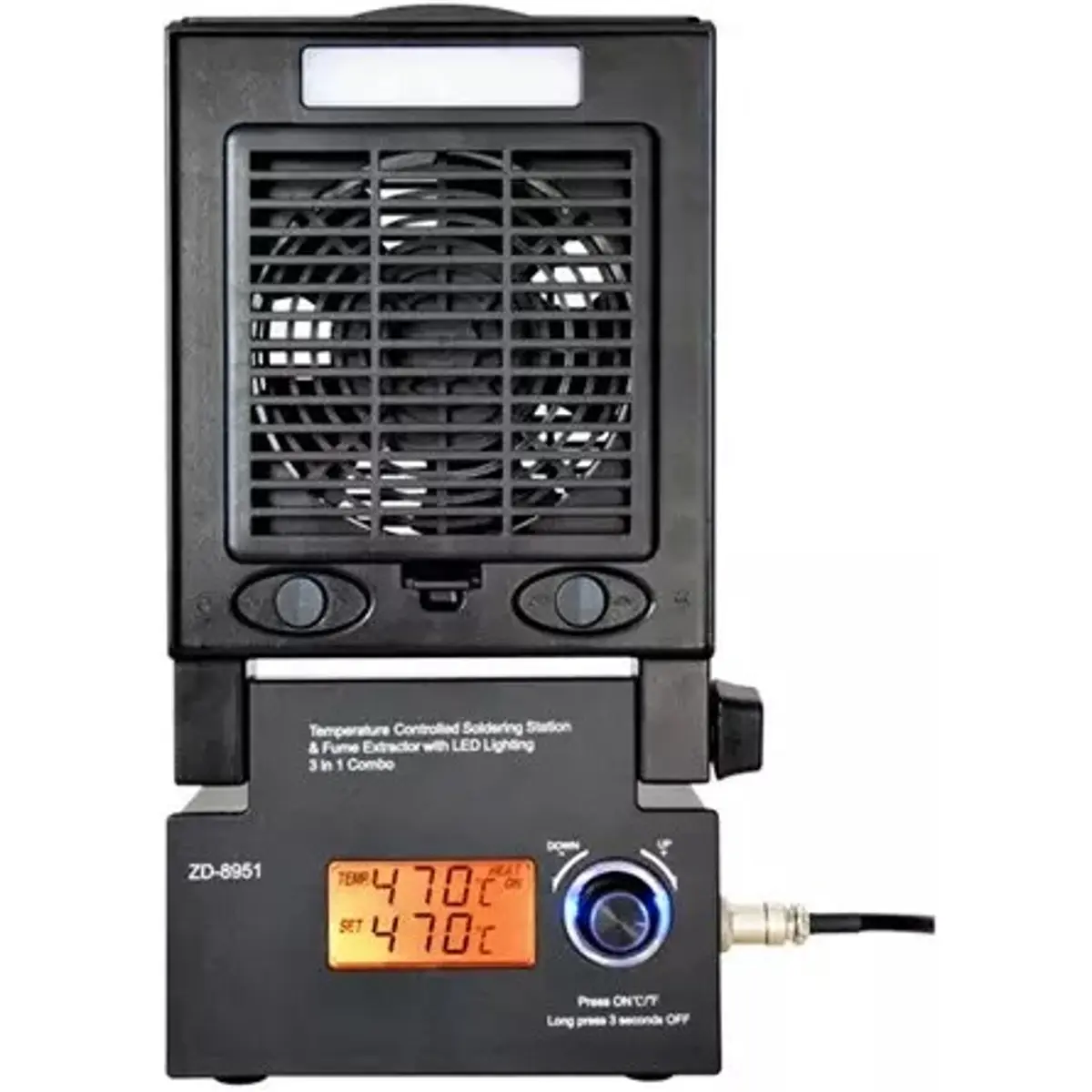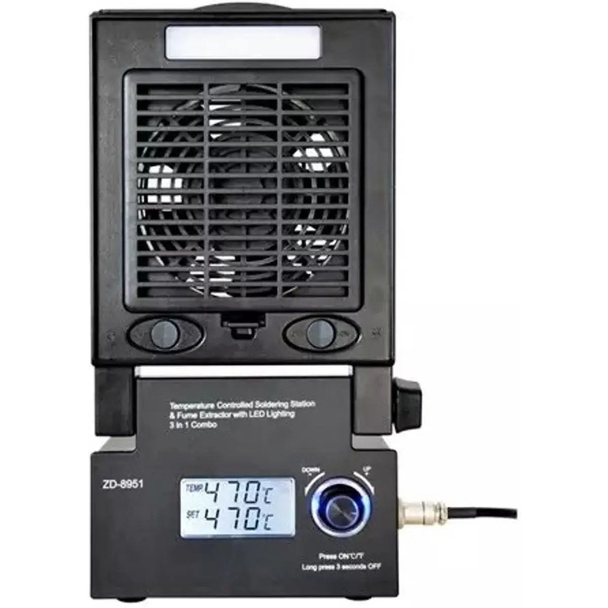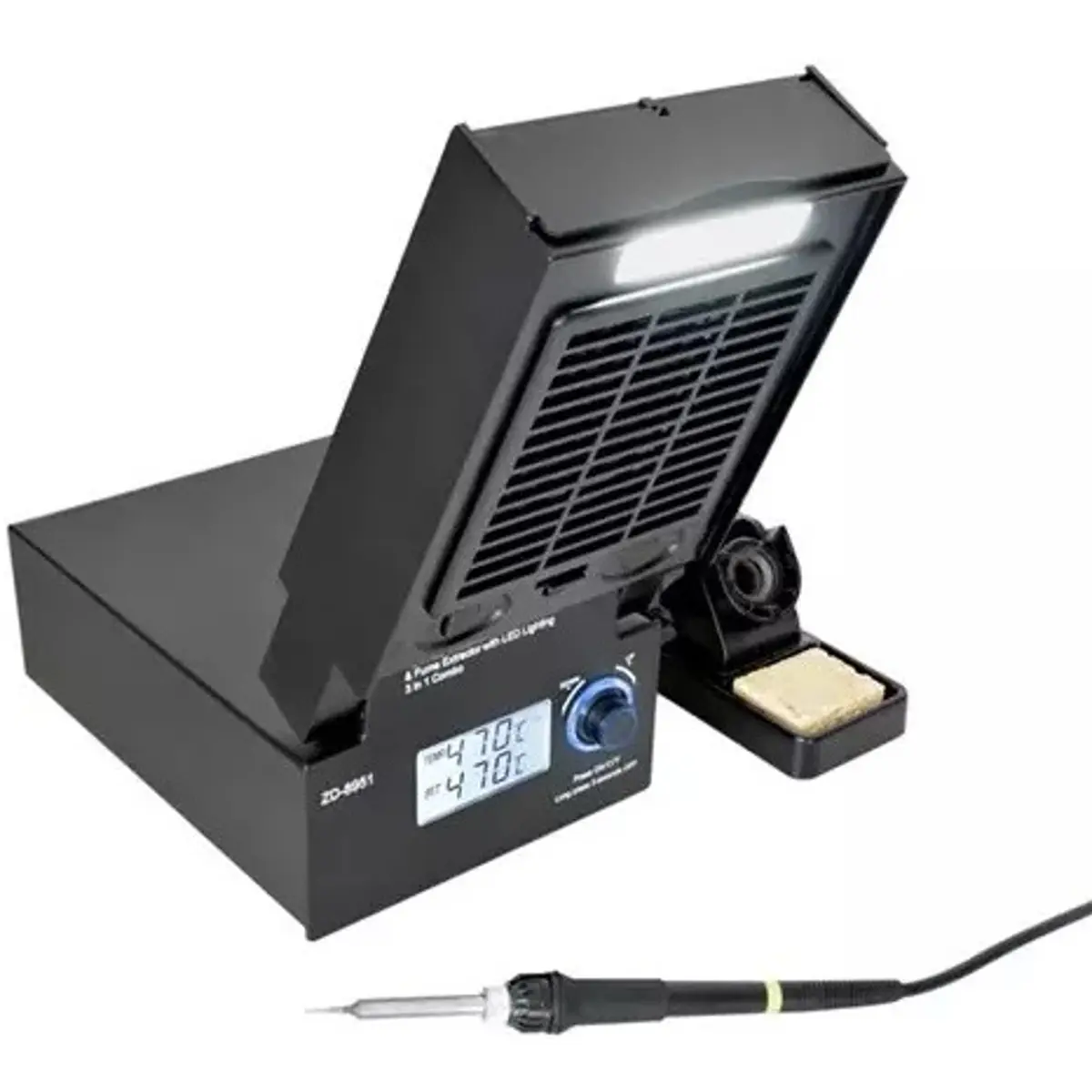 Estação de soldadura 3 em 1 com extrator de fumo e iluminação LED.