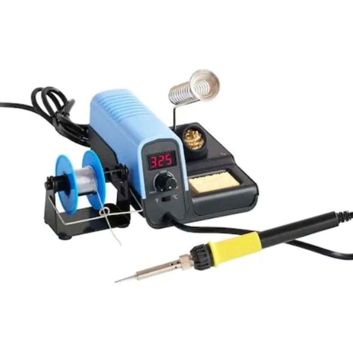 - Inclui suporte de ferro, esponja de limpeza metálica e simples (42x23mm), bobine de solda 1mmx2m e suporte c/ dispensador para bobine solda