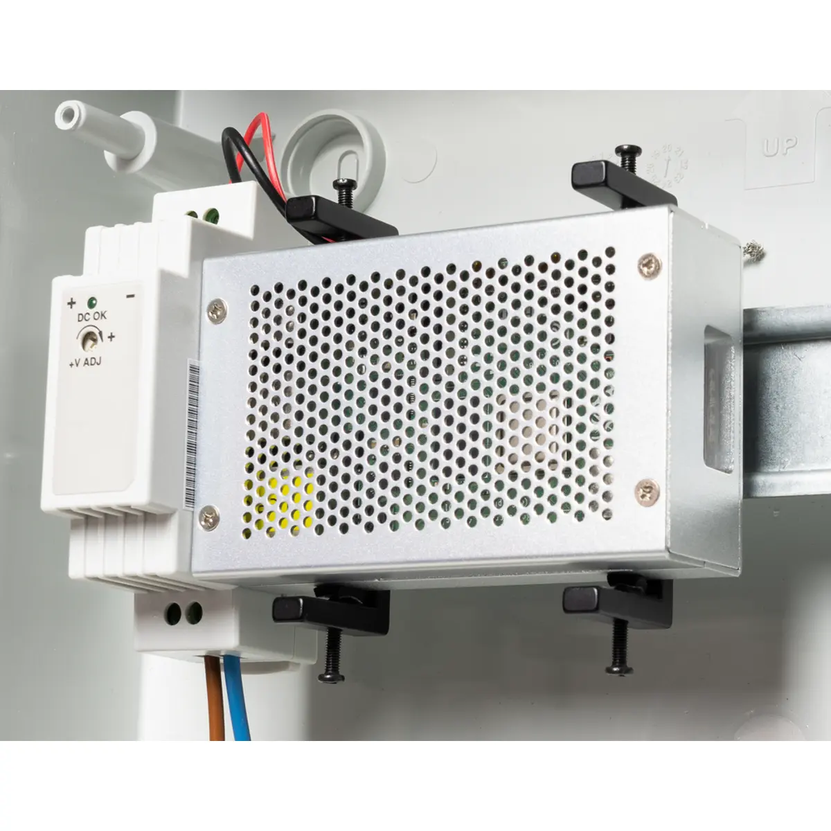 A combinação de caixa e suporte permite montá-lo num trilho DIN. Além disso, o suporte é compatível com VESA75 e VESA100 graças aos adaptadores VESA incluídos.