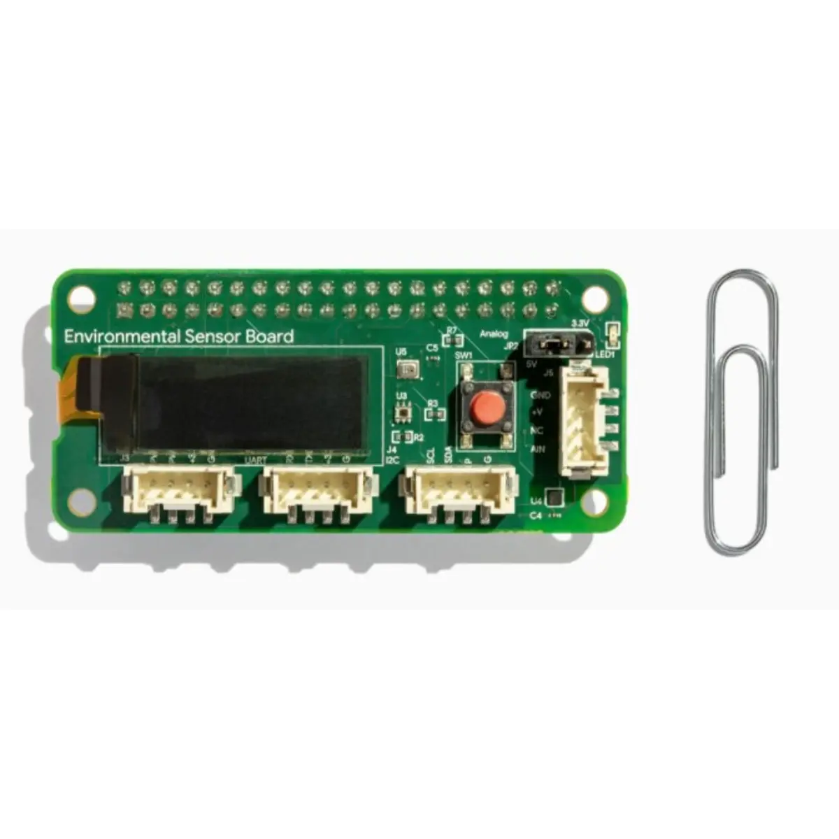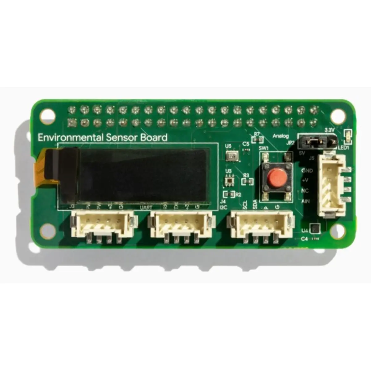 Esta placa de desenvolvimento com sensores ambientais (Environmental Sensor Board) é uma placa add-on que acrescenta à sua placa Coral Dev ou Raspberry Pi, a capacidade de medição da pressão atmosférica, da temperatura, da humidade e da intensidade da luz ambiente. Mas não está limitada a estas medições, recorrendo aos conectores Groove é possível acrescentar sensores adicionais.