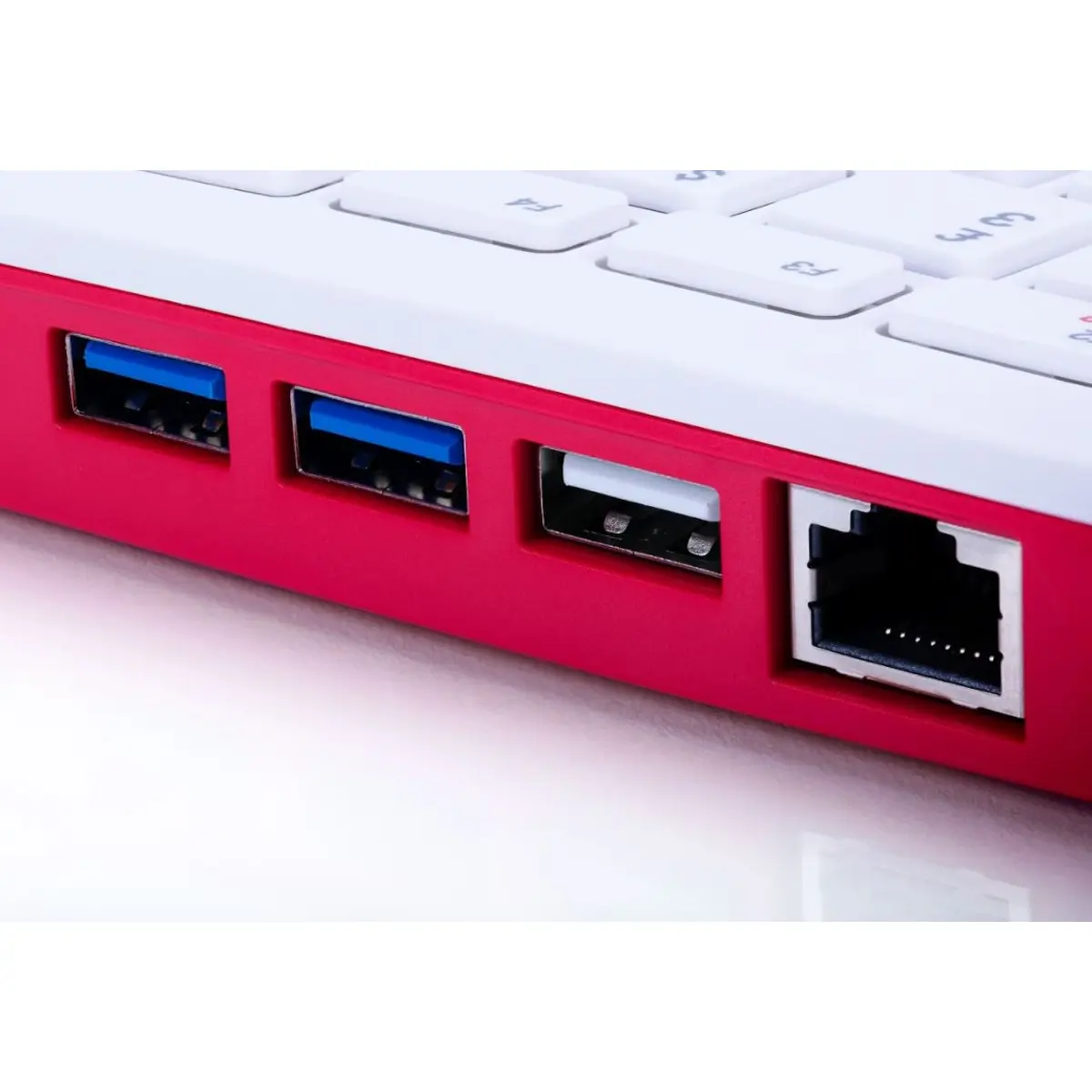 Infelizmente, o redesenho significa que algumas portas não estão disponíveis. O Pi 400 não tem um conector de saída de áudio e possui apenas uma porta USB 2.0 ao lado de duas portas USB 3.0. Também faltam os conectores de vídeo e câmara do Pi 4, embora ainda retenha a porta Gigabit Ethernet e a alimentação é feita à mesma através de uma ficha USB-C.