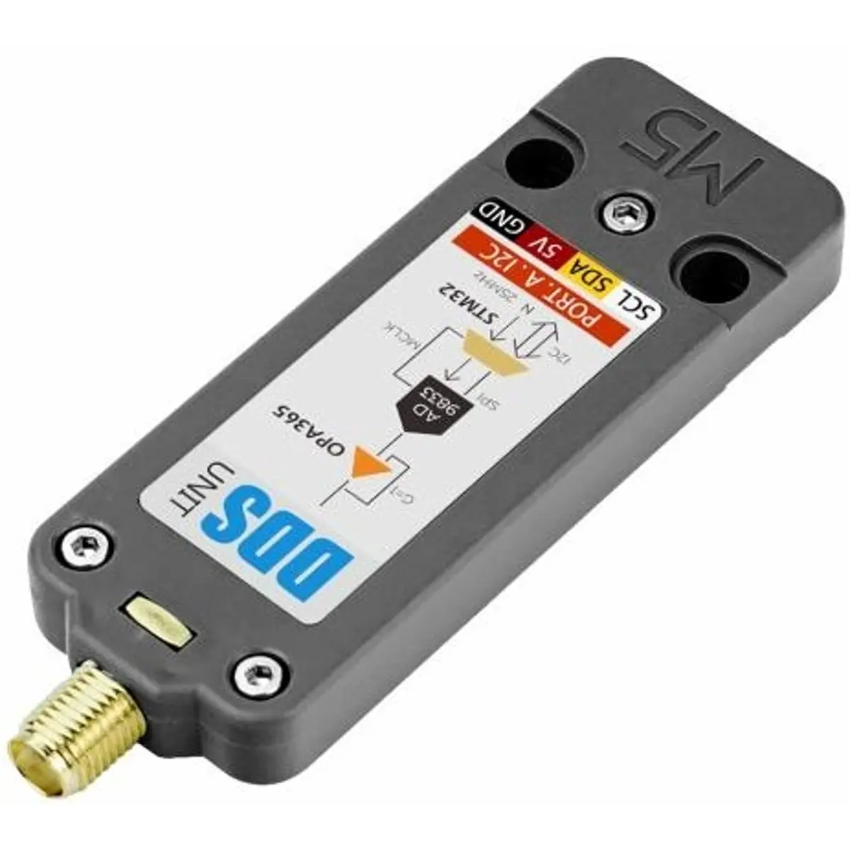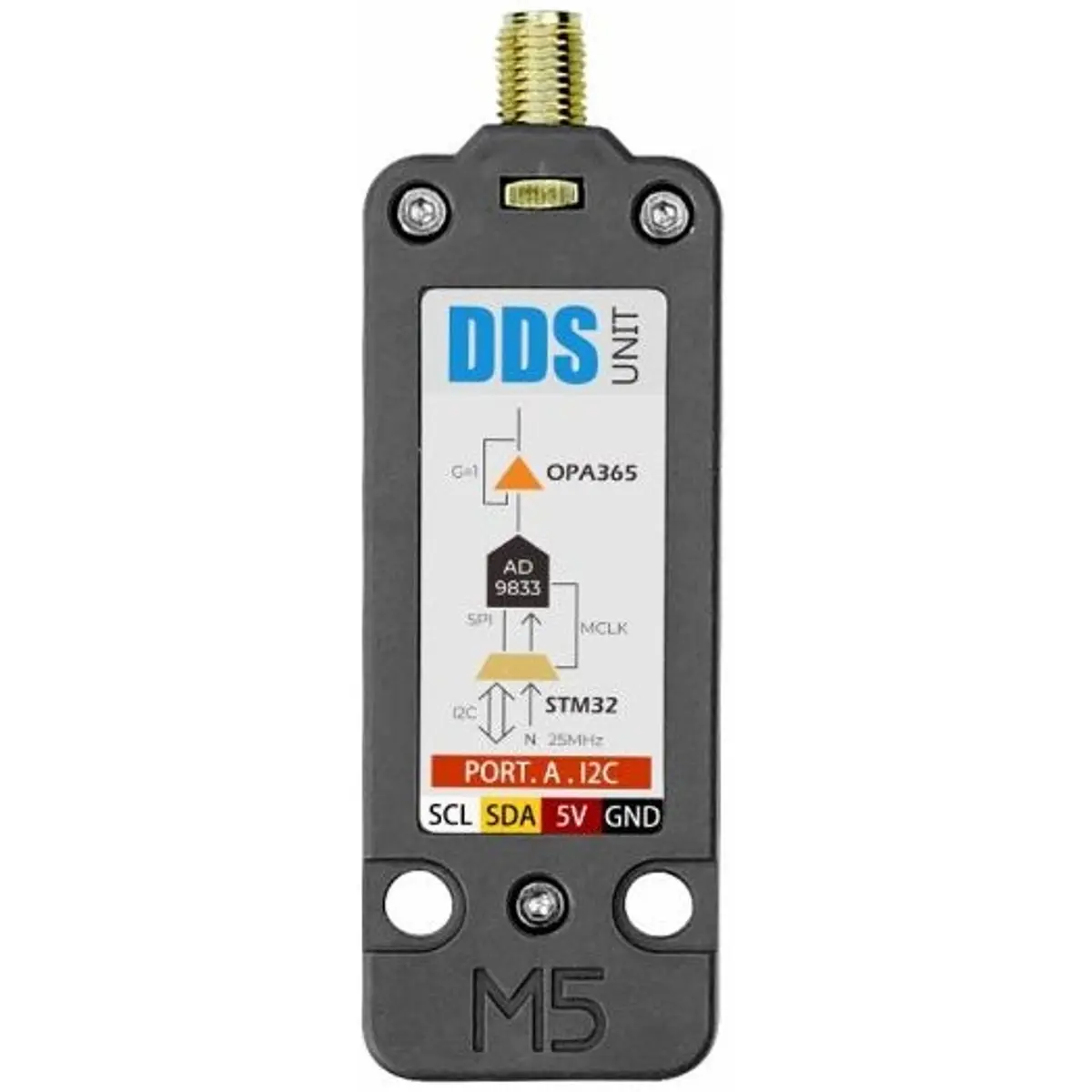 O M5Stack DDS é um gerador de funções capaz de gerar diversas formas de onda usando o método DDS (Direct digital Synthesis). Para isso ele utiliza o gerador ondas programável AD9833 e o micro controlador STM32F0.