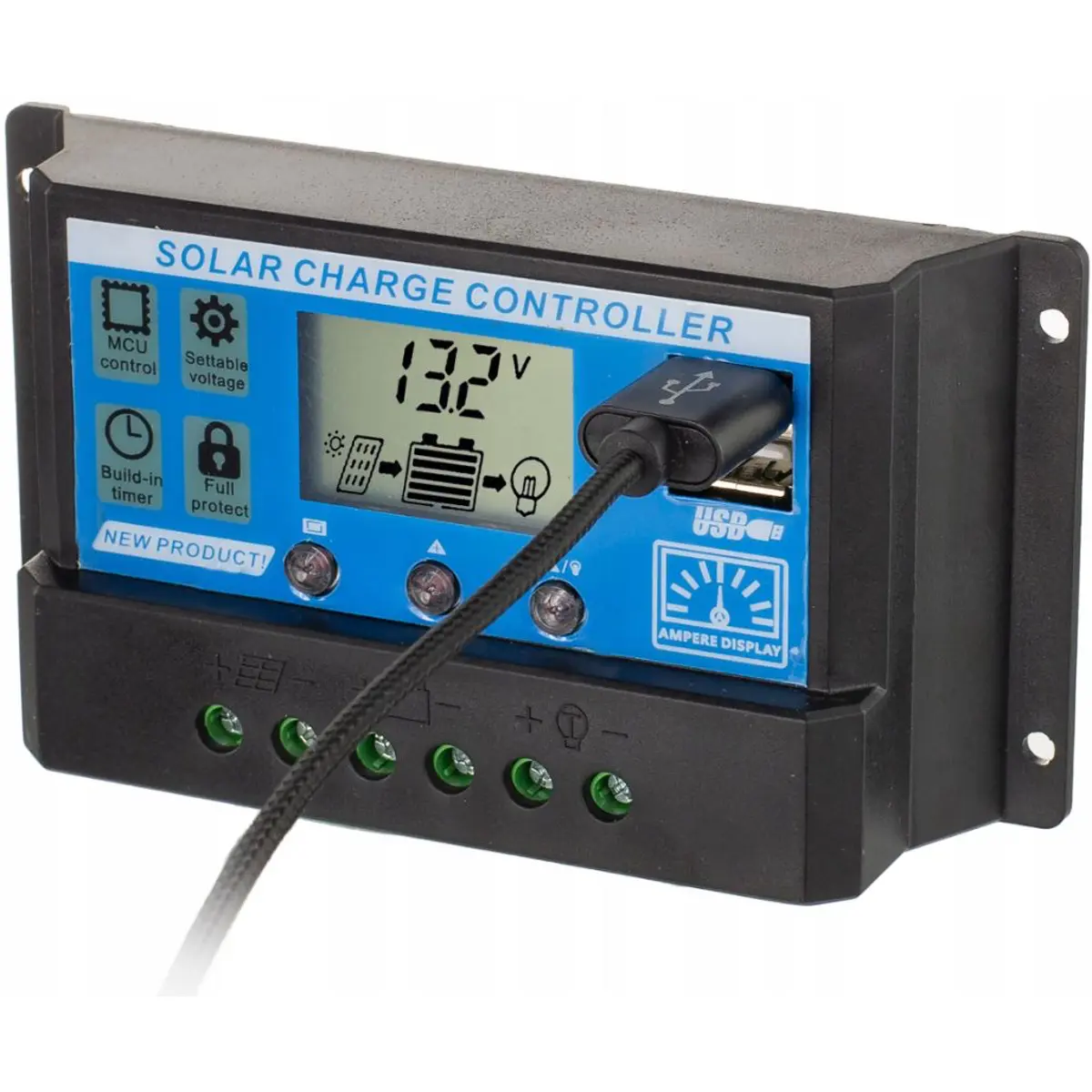 O controlador solar é usado para controlar a operação de sistemas fotovoltaicos autônomos . Este dispositivo garante características corretas de corrente de carga para as baterias, além de protegê-las contra descargas excessivas ou sobrecargas, o que afeta negativamente a vida útil da bateria.