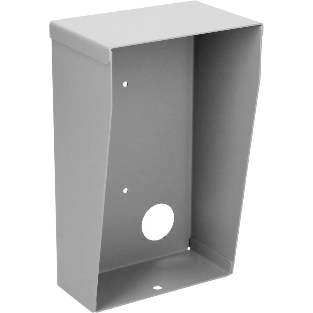 Proteção para botoneiras exteriores em chapa de aço com acabamento em pintura eletrostática cinza, concebida para montagem em superfície em painéis externos da série FOSSA (OR-DOM-RL-901, -902 e -903). Resistente a condições climáticas adversas, oferece proteção contra chuva e intempéries, mantendo a integridade estrutural. Dimensões: profundidade 82 mm, largura 120 mm, altura 202 mm. Ideal para ambientes industriais ao ar livre, garantindo durabilidade, resistência à corrosão e instalação simples.