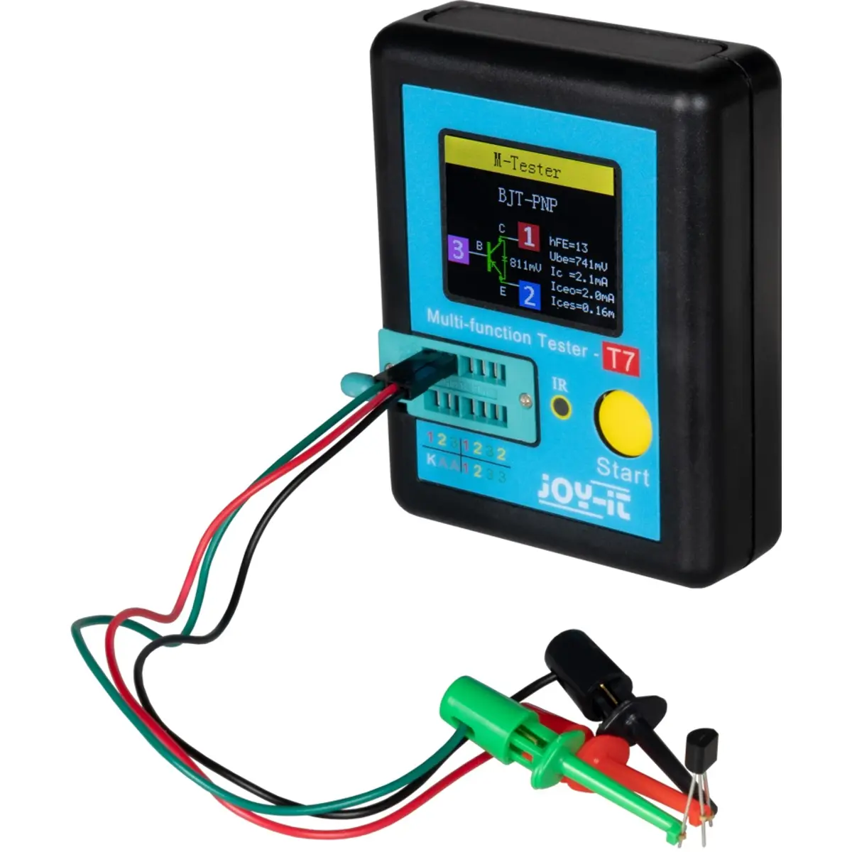 Este analisador de componentes eletrónicos oferece-lhe uma vasta gama de funções por um preço atrativo. Com a ajuda deste medidor LCR pode medir as indutâncias (L) de bobinas, capacitâncias (C) de condensadores e as suas resistências (R) (em série equivalentes - ESR). Mas não está limitado a estes componentes, este é capaz de reconhecer e analisar muitos outros componentes eletrónicos tais como: díodos, transístores bipolares, tirístores, triacs, FETs e outros.
